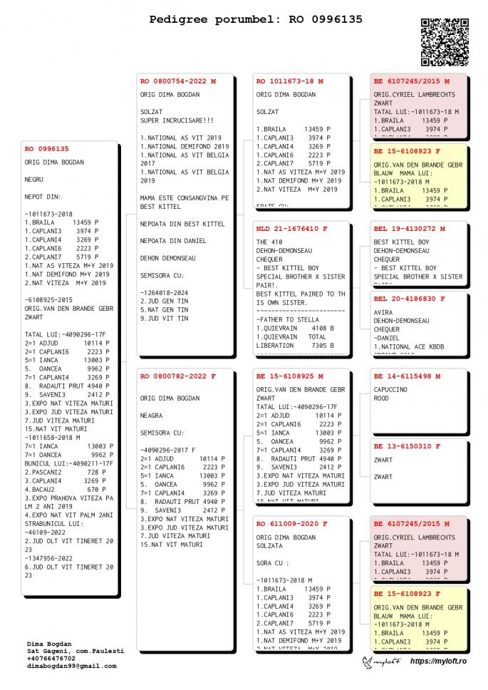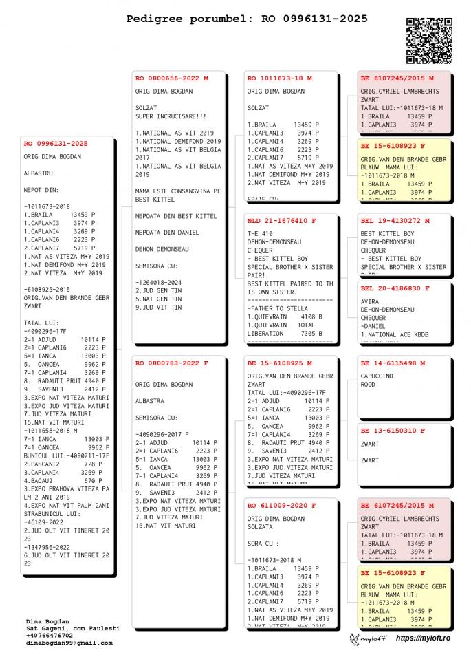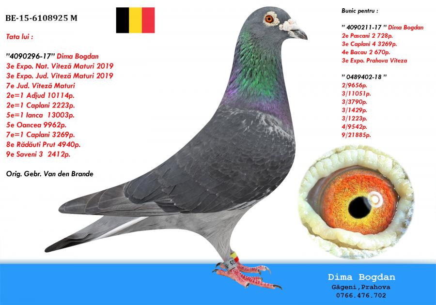 Domnul Dima Bogdan din sat Gagesti jud. Prahova detine unii dintre cei mai rapizi porumbei de viteza - demifond din Romania. Concureaza in cadrul UCPR intr-o grupare extrem de puternica cu peste 13,000 de porumbei unde reuseste sa obtina rezultate remarcabile cum ar fi primele 13 locuri din + 13,000 porumbei, primele 6 locuri din 13,500 porumbei etc. Este clar ca acesta si-a adus porumbei de super clasa pentru a putea obtine astfel de rezultate. Practic, il putem numi un super-star al concursurilor de viteza-demifond. Prin amabilitatea acestuia, gasiti 11 pui din starurile crescatoriei! Mai jos va prezentam o scurta prezentare a celor mai bune rezultate in ultimii ani: