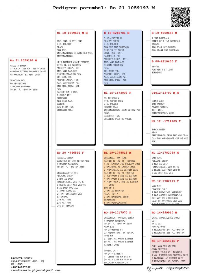 Prin amabilitatea acestuia va oferim cativa porumbei cu origini de top.