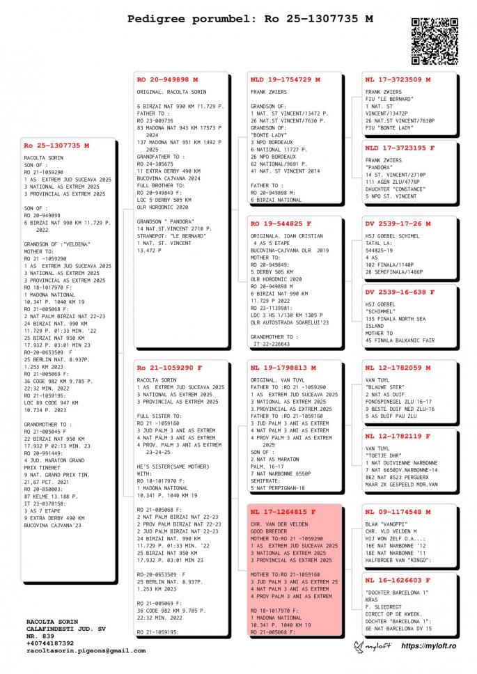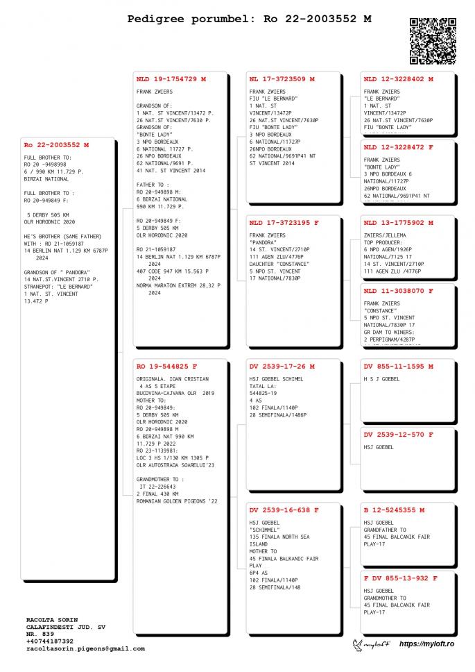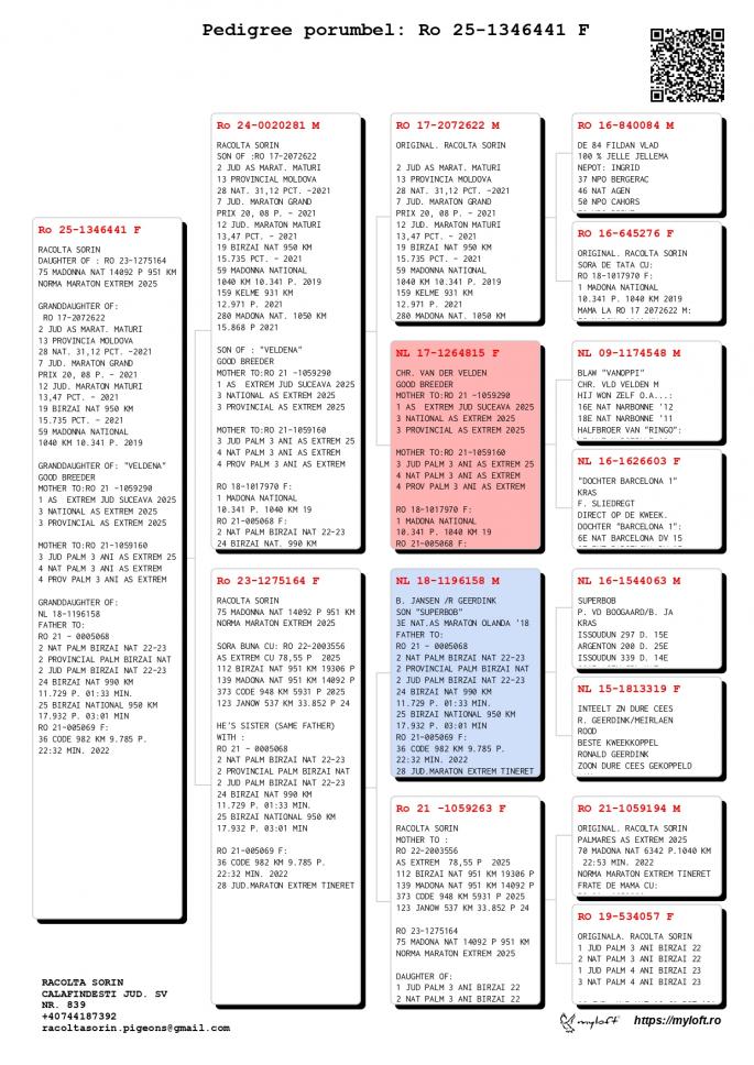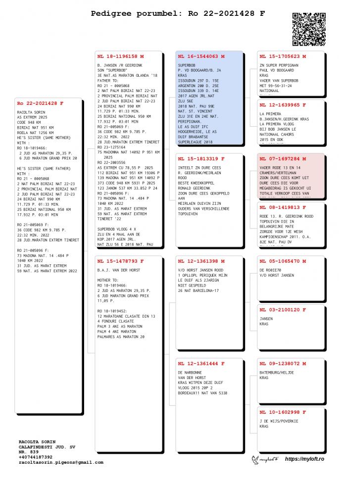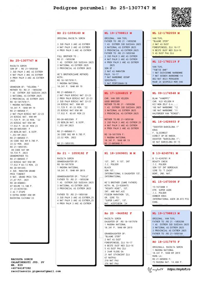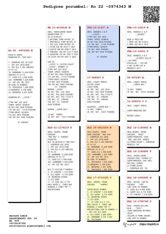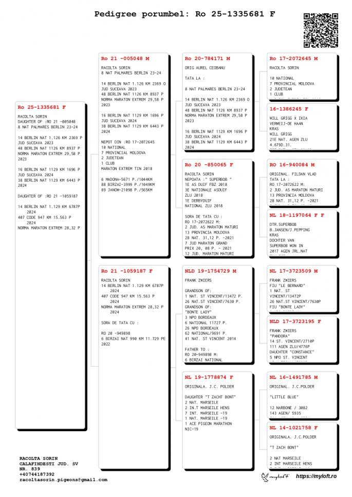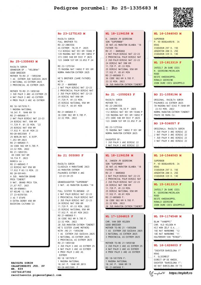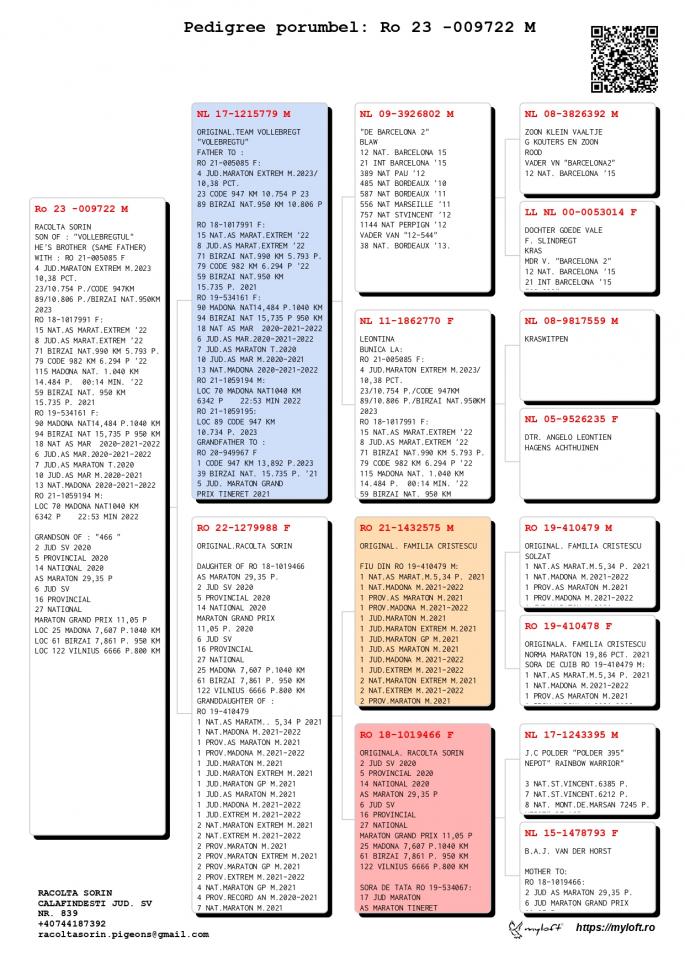 Origine: Tată – 100% Racolta Sorin, Mamă – Original Racolta Sorin