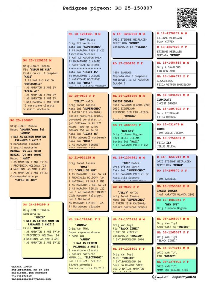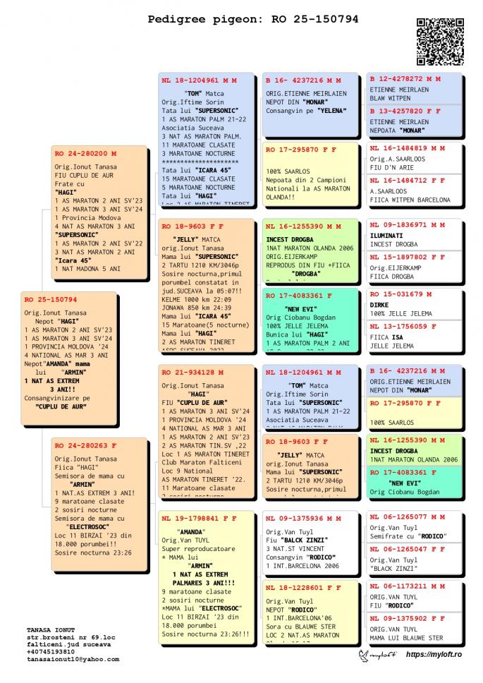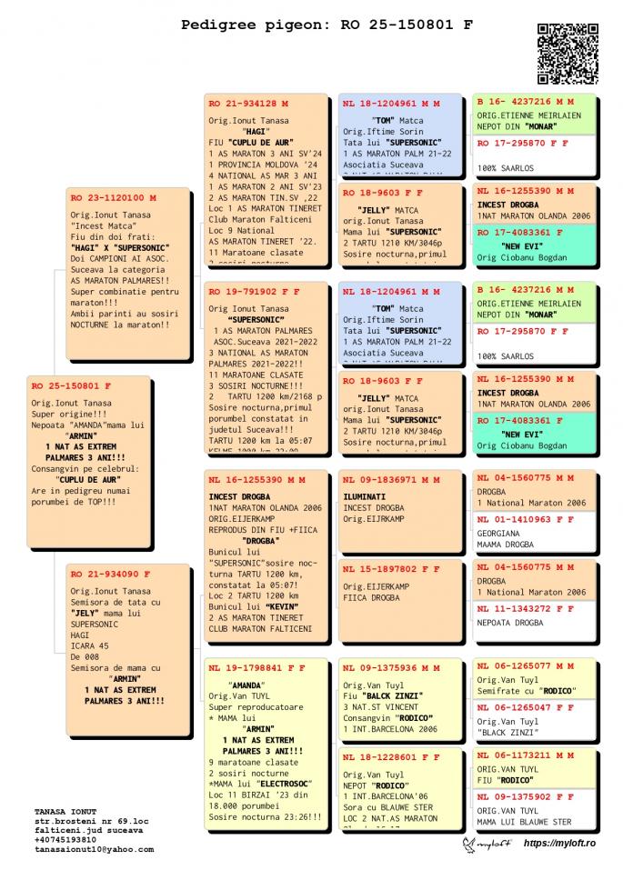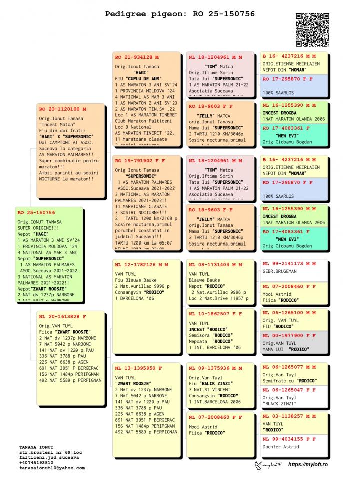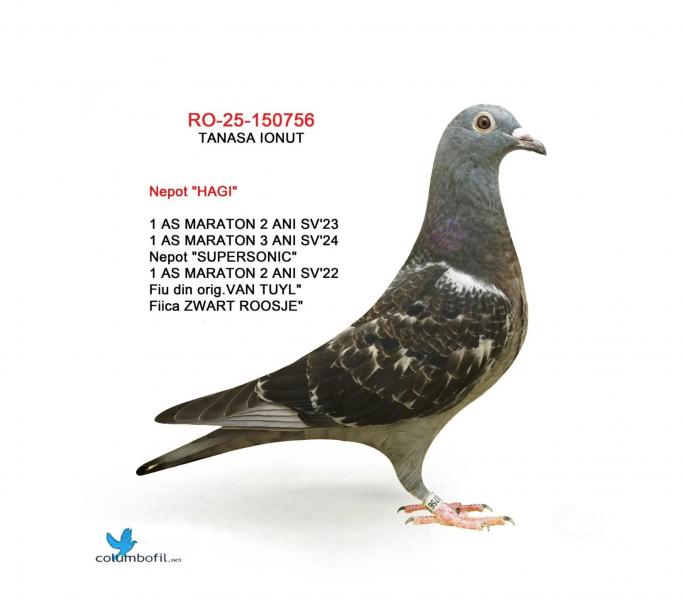 TATA este Incest ”HAGI” X ”SUPERSONIC” Nepoata”HAGI” - LOC 1 AS Maraton Palm. 3 ANI Asoc. Suceava 22 - 24; - LOC 1 AS Maraton 3 ANI PROVINCIAL MOLDOVA 22 - 24; - LOC 4 National AS Maraton 3 ANI; - 11 Maratoane Clasate; - 3 SOSIRI NOCTURNE la Maraton: - GOLDAP 23 - BIRZAI 24 - MADONA 25. Nepoata SUPERSONIC - LOC 1 AS Maraton Palm. 2 ANI Asoc. Suceava 21 - 22 - LOC 3 AS Maraton Palm. 2 ANI NATIONAL - 11 Maratoane Clasate - 3 Maratoane SOSITA NOCTURN Nepoata ” ZWART ROOSJE” org. VAN TUYL MAMA este fiica ”ZWART ROOSJE org. VAN TUYL oferta curenta: ThomasV |