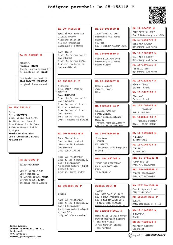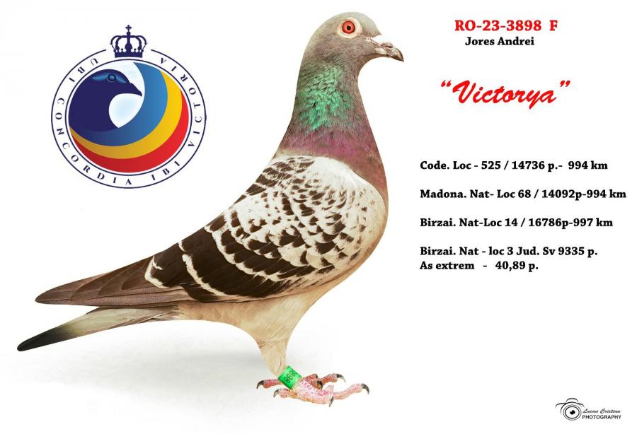Fiica VICTORIA 4 Birzai Nat. Jud. SV `25 14 Birzai Nat. General `25 8 AS Extrem Jud. SV 40 pct 7 Extrem Maturi Jud. SV 5.20 pct Femela care i-a adus dl Jores Loc 1 Crescator Birzai Nat. Jud. SV