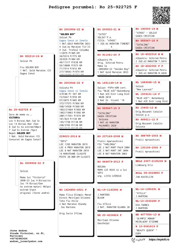 Frate de tata cu VICTORIA 4 Birzai Nat. Jud. SV `25 14 Birzai Nat. General `25 8 AS Extrem Jud. SV 40 pct 7 Extrem Maturi Jud. SV 5.20 pct Femela care i-a adus dl Jores Loc 1 Crescator Birzai Nat. Jud. SV