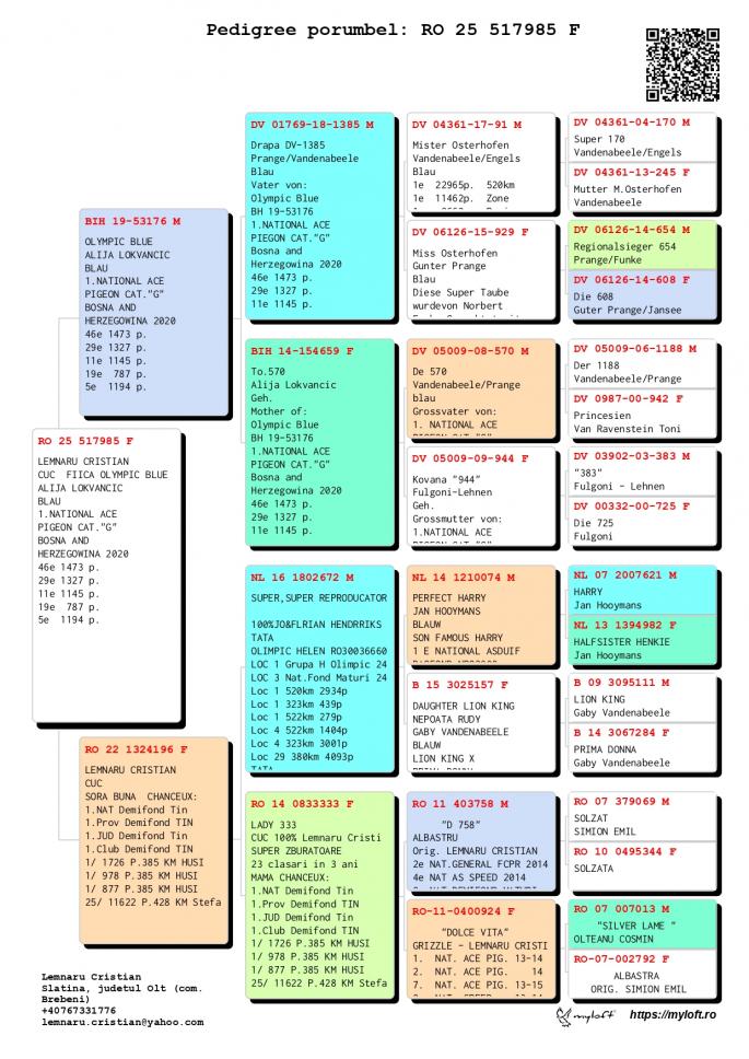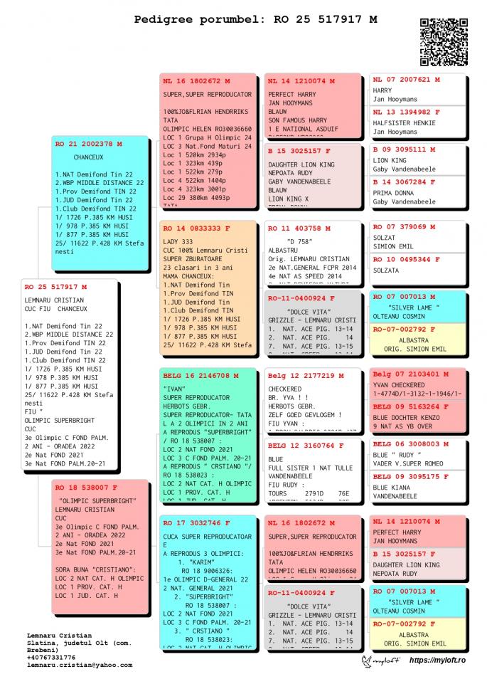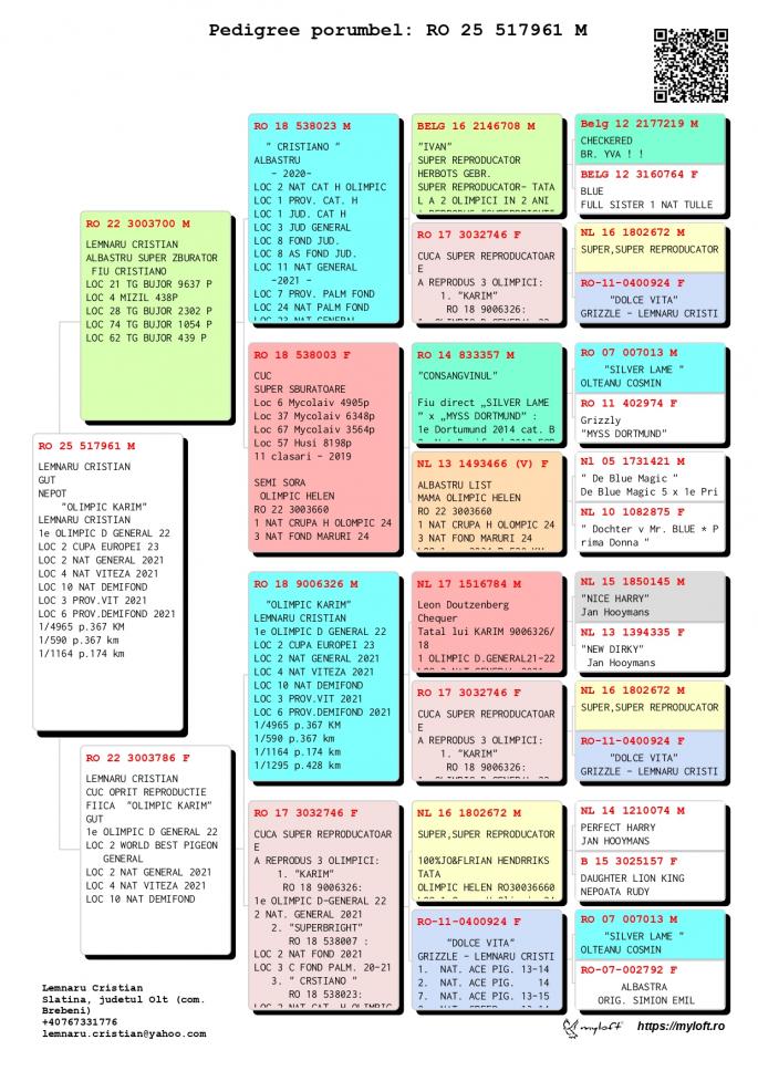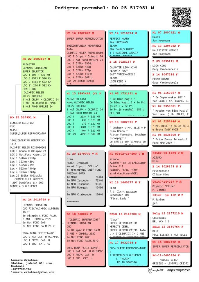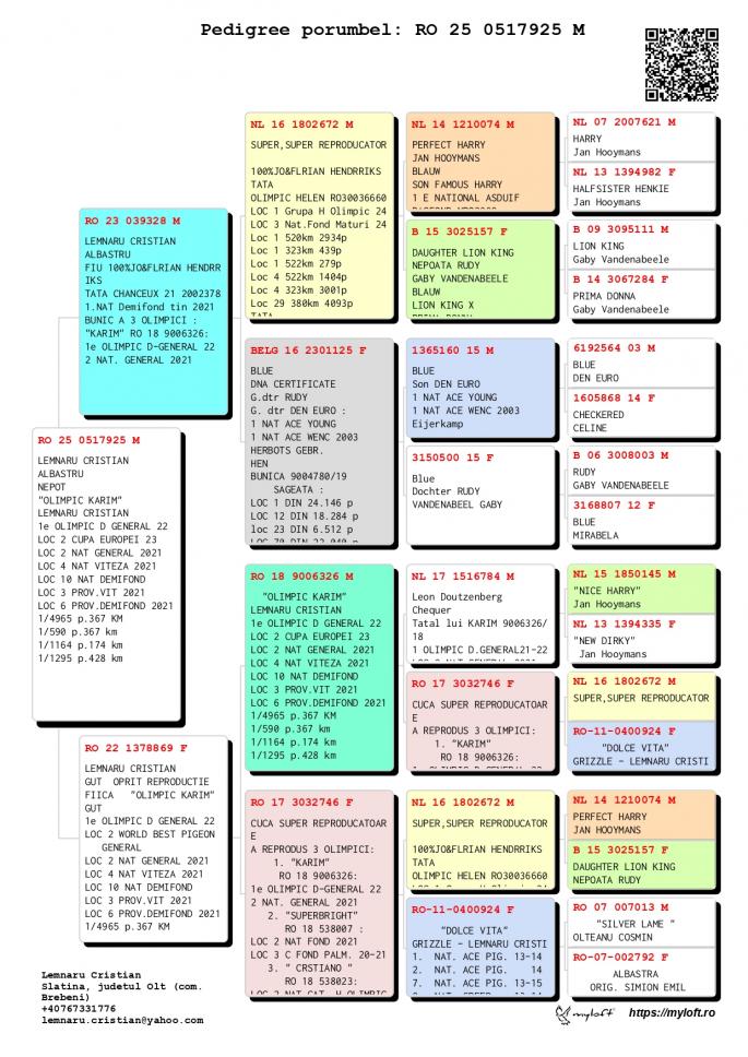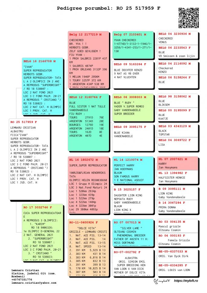 Fiica IVAN - Super reproducator Tata la 2 porumbei Olimpic SUPERBRIGHT Loc 2 Nat. Fond 2021 Loc 3 Olimpic C Fond Palm. Loc 3 C. Fond Palm. 2 ani CRISTIANO Loc 2 Nat. Cat. H. OLIMPIC Loc 1 Prov. Cat. H Loc 1 Jud. Cat. H Loc 3 Jud. General Loc 8 Jud. Fond Loc 8 Jud. AS Fond