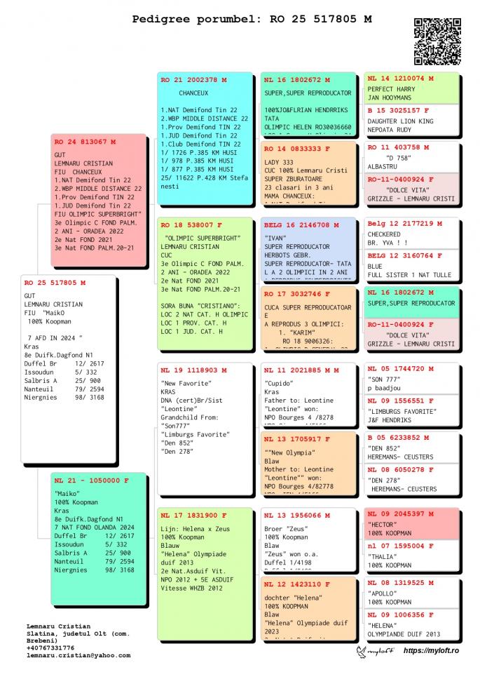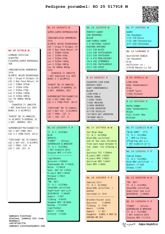Nepot NL 16-1802672 M - SUPER REPRODUCATORUL-Jo & Florian Hendriks - Unul dintre cei mai buni reproducatori din Europa ! Tatal mai multor porumbei Olimpici din Romania ! Tata la OLIMPIC HELEN Loc 1 Grupa H. Olimpic 2024 Loc 3 Nat. Fond Maturi 2024 1 / 2934 p. 520 km 1 / 439 p. 323 km 1 / 279 p. 522 km 4 / 1404 p. 522 km 4 / 3001 p. 323 km CHANCEAUX 1 Nat. Demifond Tineret 2022 2 WBP Demifond 2022 1 Prov. Demifond Tineret 2022 1 Jud. Demifond Tineret 2022 1 Club Demifond Tineret 2022 1 / 1726 p. 385 km 1 / 978 p. 385 km 1 / 877 p. 385 km 25 / 11622 p. 425 km OLIMPIC KARIM Loc 1 Olimpic D. General 21-22 Loc 2 Cupa Europei 2023 Loc 2 Nat. General `21 Loc 4 Nat. Viteza `21 LOc 10 Nat. Demifond Loc 3 Prov. Viteza `21 Loc 6 Prov. Demifond `2 SUPERBRIGHT Loc 2 Nat. Fond 2021 Loc 3 Olimpic C Fond Palm. Loc 3 C. Fond Palm. 2 ani CRISTIANO Loc 2 Nat. Cat. H. OLIMPIC Loc 1 Prov. Cat. H Loc 1 Jud. Cat. H Loc 3 Jud. General Loc 8 Jud. Fond Loc 8 Jud. AS Fond