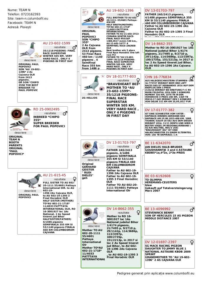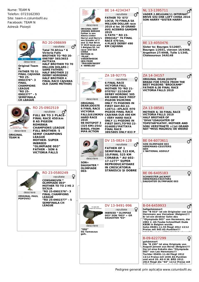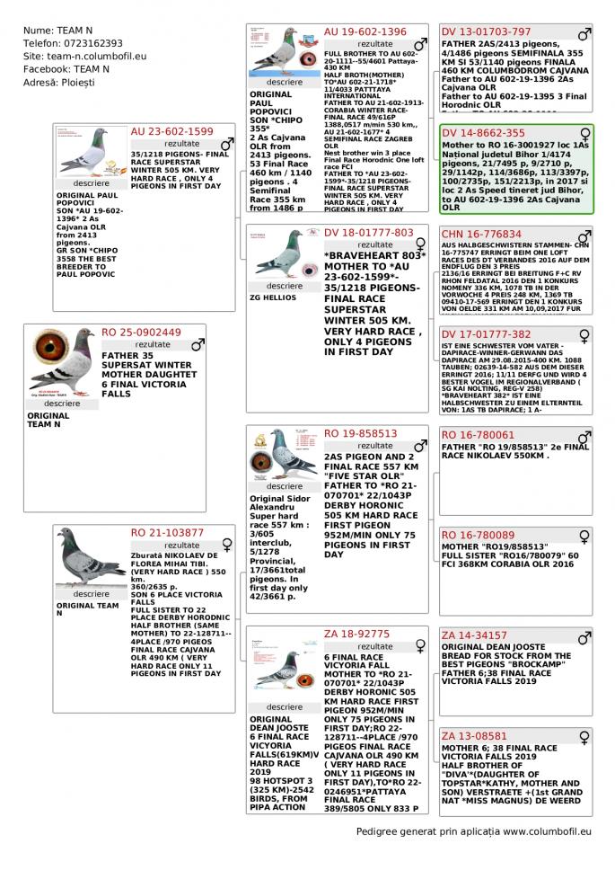 Nepot ZA 18-92775 F 6 Final Victorya Falls 619 km - Concurs Foarte Greu Mama, bunica si strabunica multor porumbei de top ! oferta curenta: - |