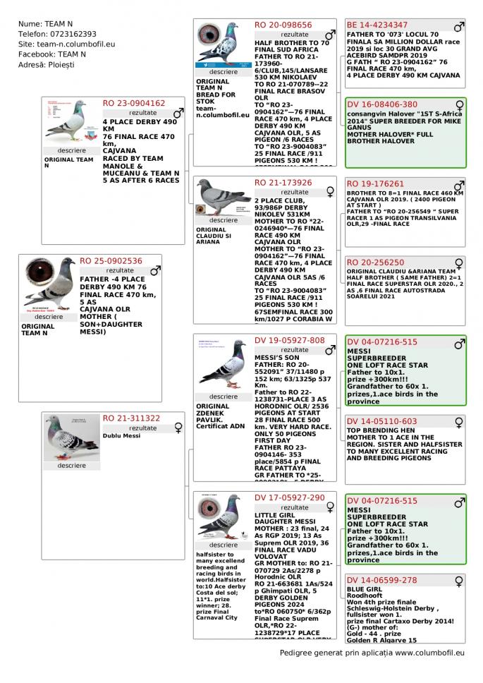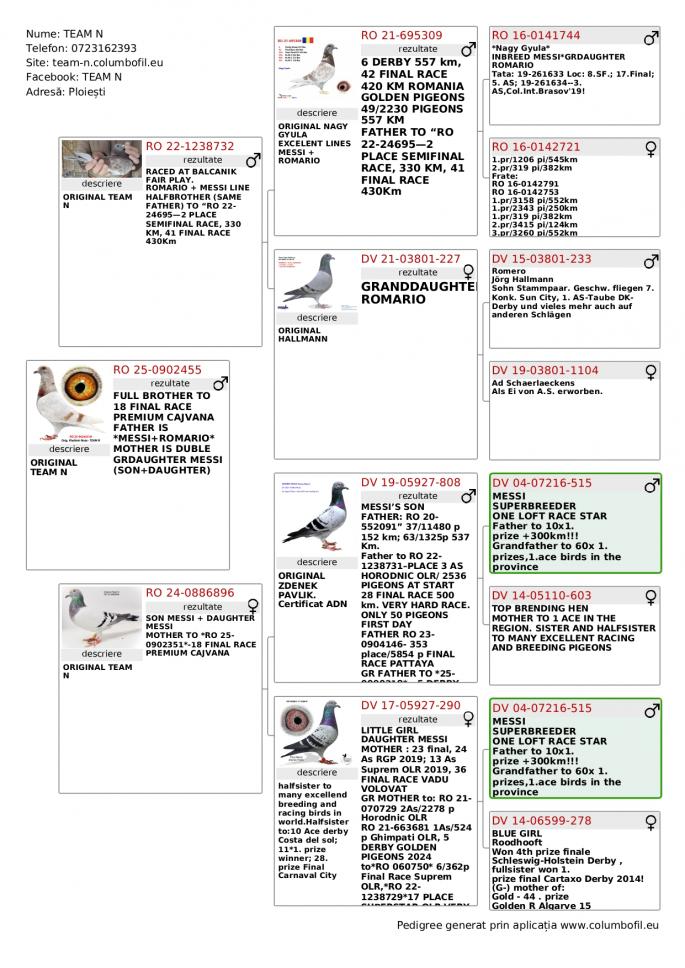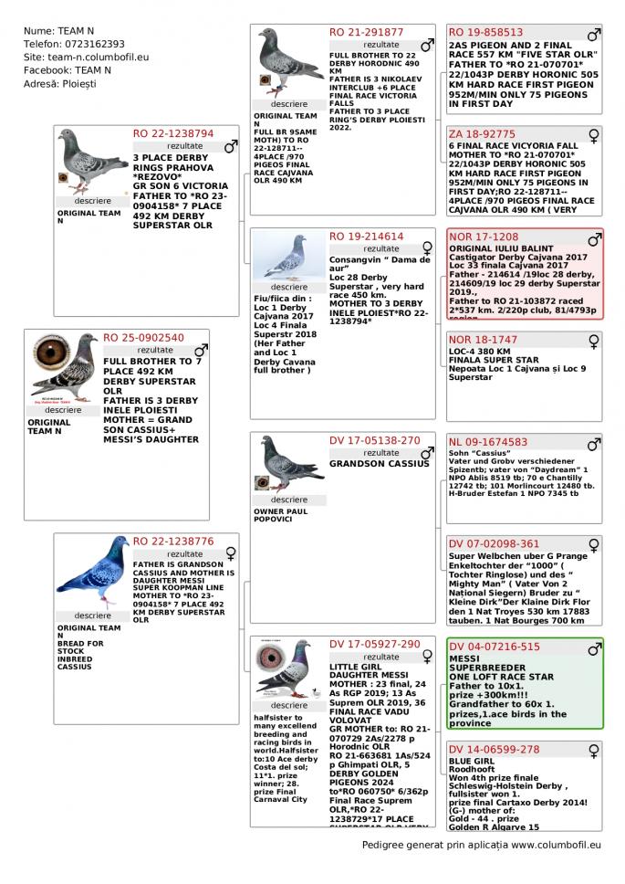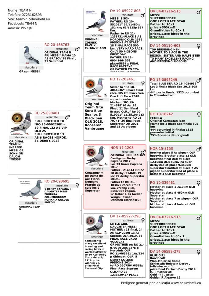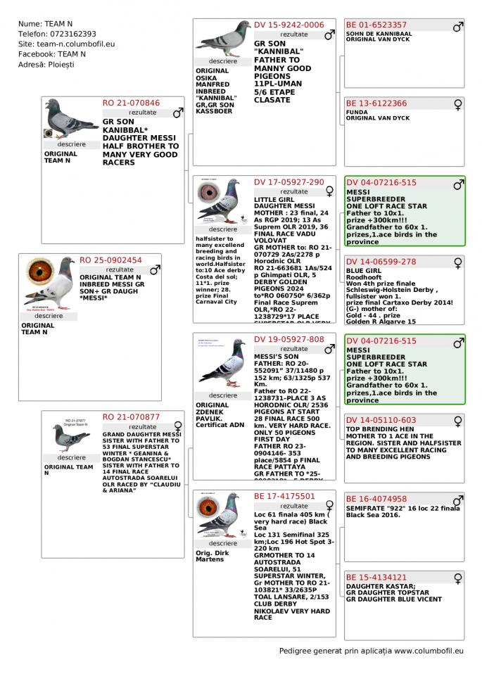 Consangvin MESSI - Super Reproducator pe OLR Tatal bunicul si strabunicul multor castigatori de concursuri tip OLR ! oferta curenta: - |