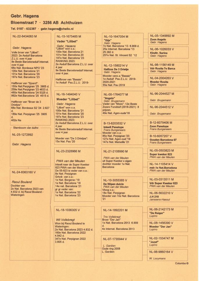 Cu totii am auzit despre marii maratonisti ai Europei, Fratii Hagen si al lor porumbel Angelo. Aici vorbim despre o istorie columbofila pe care cei doi frati au scris-o in toata activitatea lor columbofila. Este greu de gasit o crescatorie cu atatea rezultate de top intr-o perioada de peste 30 de ani de columbofilie dar, si mai greu, o crescatorie cu atatea referinte ca cea a Fratilor Hagens.