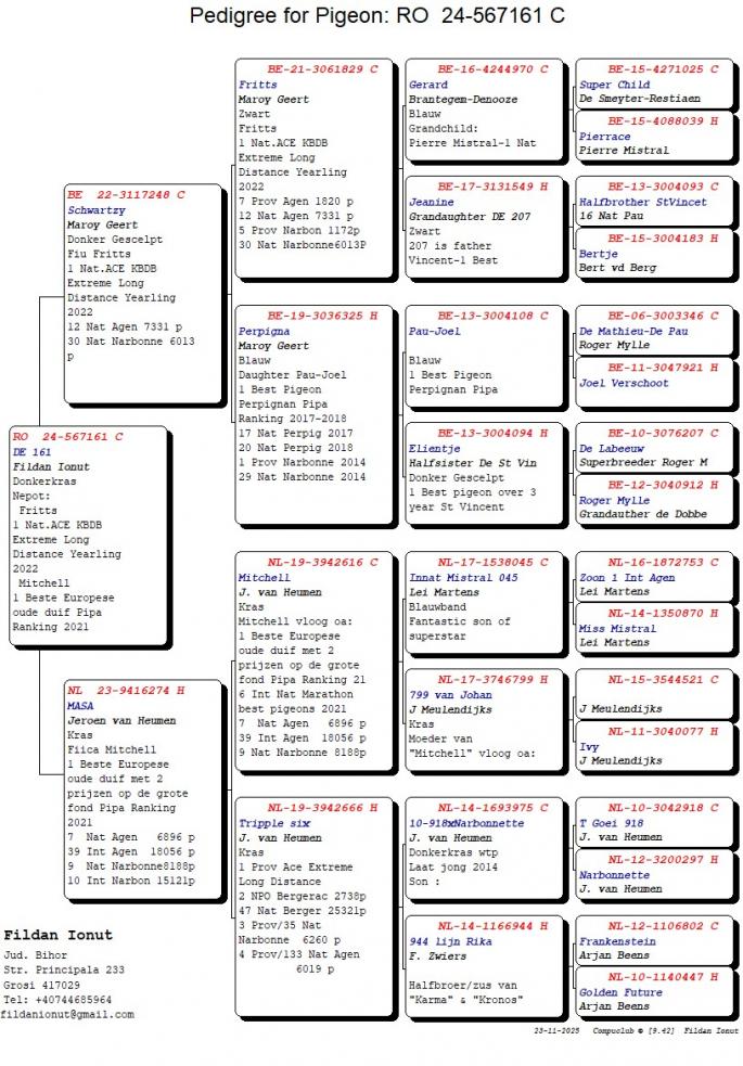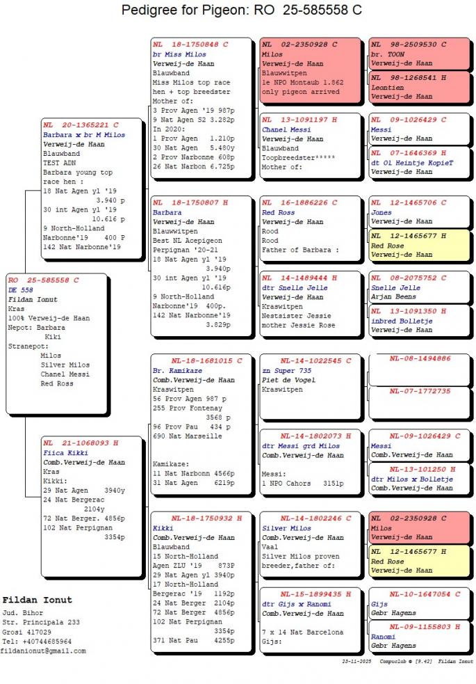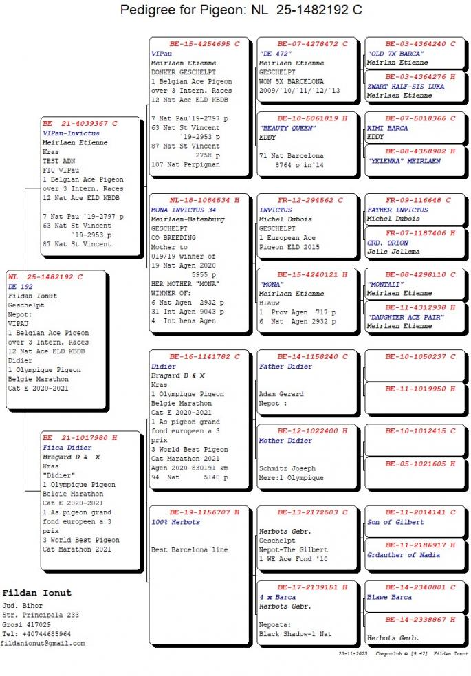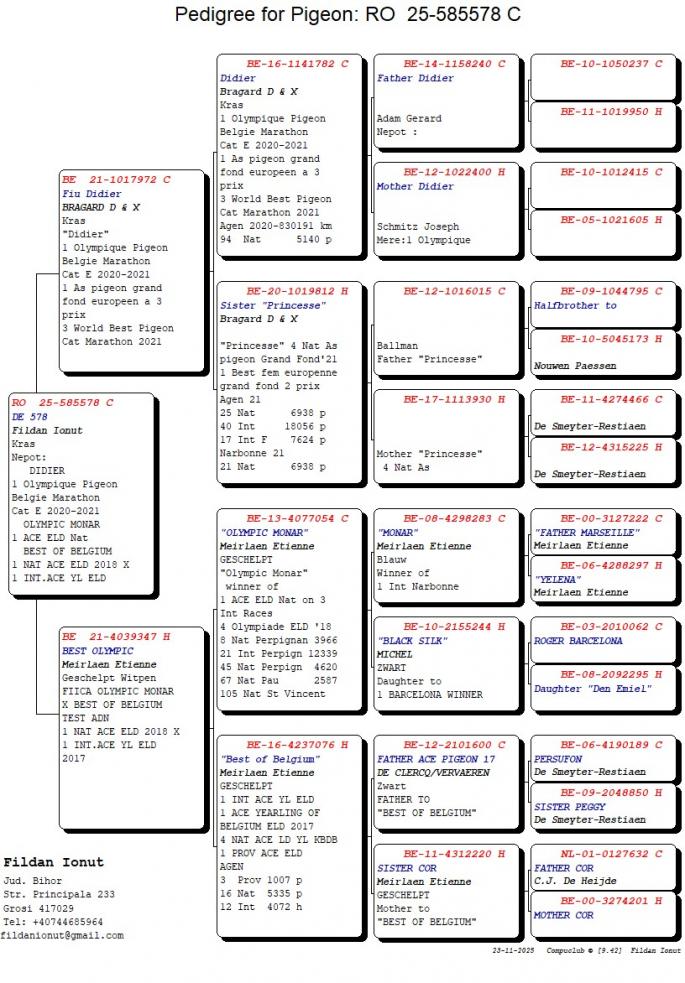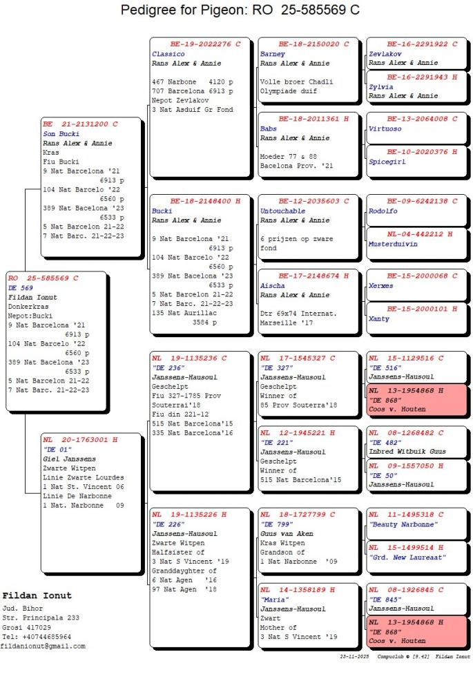 Nepoata Zevlakov 1 World Best Pigeon Maraton 20 3 Nat. As Maraton 2020 4 Europa As Maraton 2020 Nepoata Chadli 2 World Best Pigeon Maraton 20 2 Olimpiada Maraton Oradea Nepoata Davida 65 Nat. Tarbes Nepoata Disco Lady 38 Nat. Narbonne 21 castigator: Dorgoovidiu |