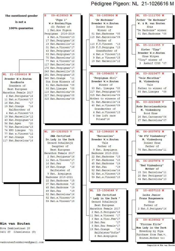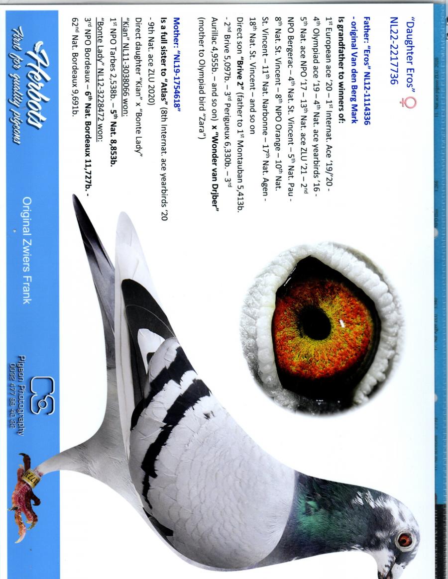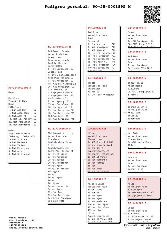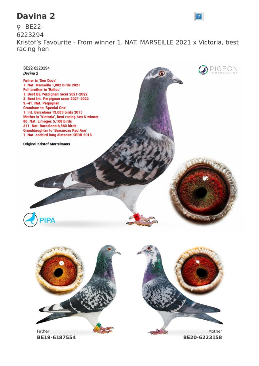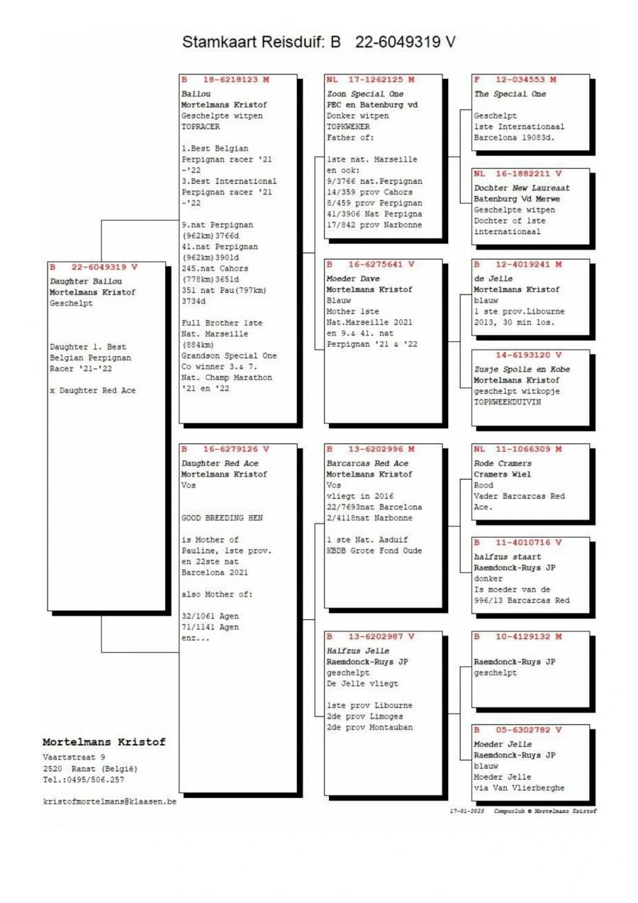 Nepot RED ROSS - SUPER REPRODUCATOR ! Tata la : 1 Europa Ace Hen `22 1 Nat. Acepigeon `22 8 Nat. Agen YL `22 10 Nat. St. Vicent `22 26 Nat. Perpignan `22 35 Nat. Barcelona `22 18 Nat. Agen YL `19