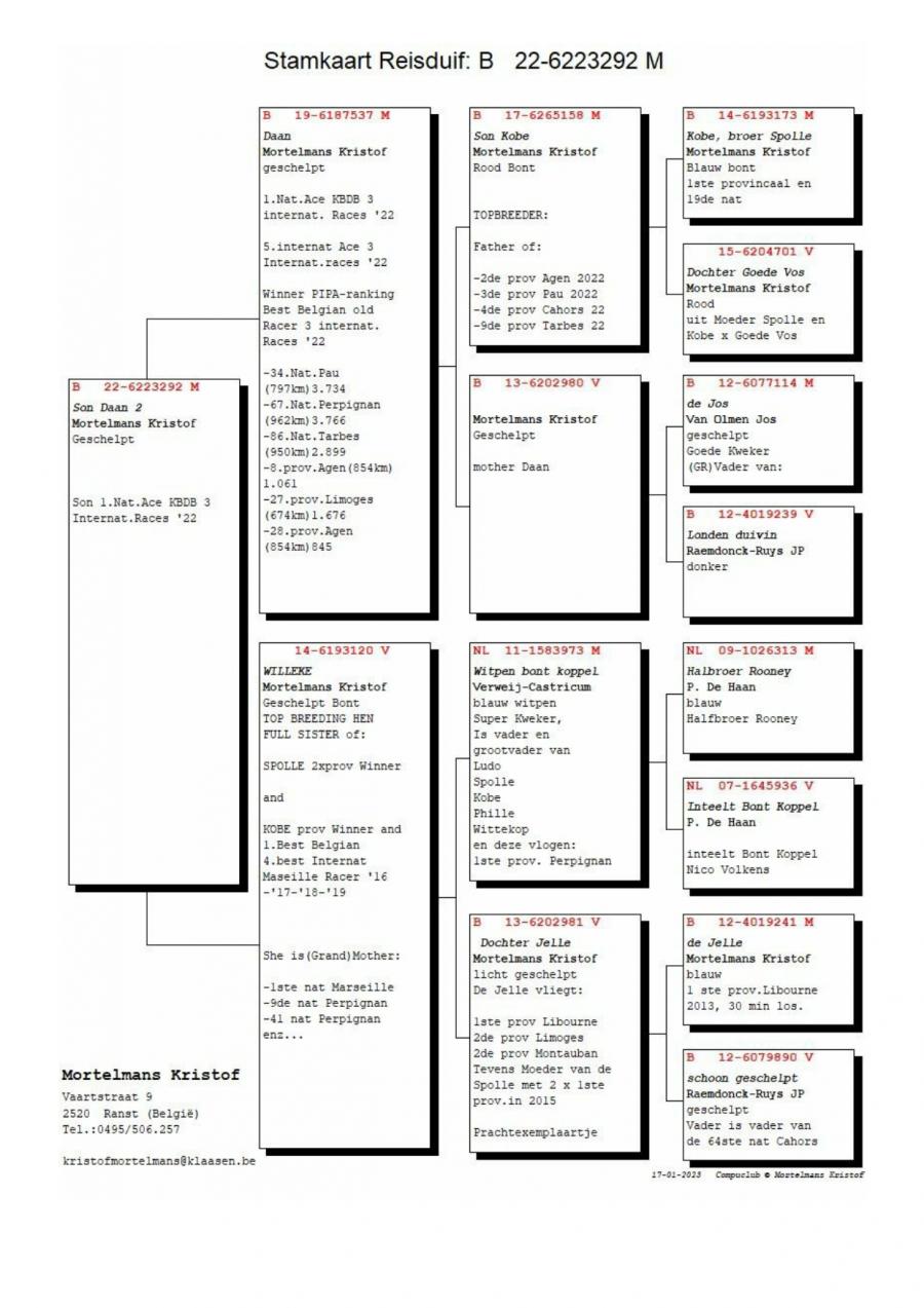 Nepot DAAN 1 Nat. Acebird 3 Int. Races KBDB`22 4 Int. Acebird 3 Int. Races`22 34-67-86 Nat. Winner 2022