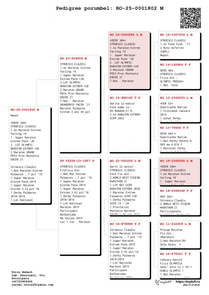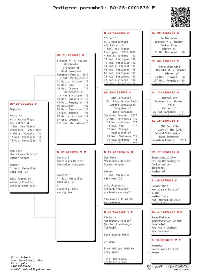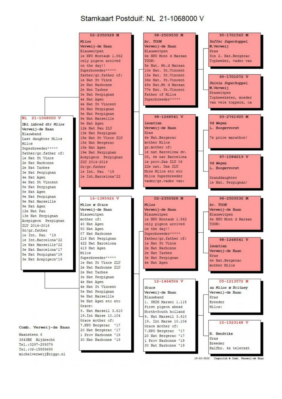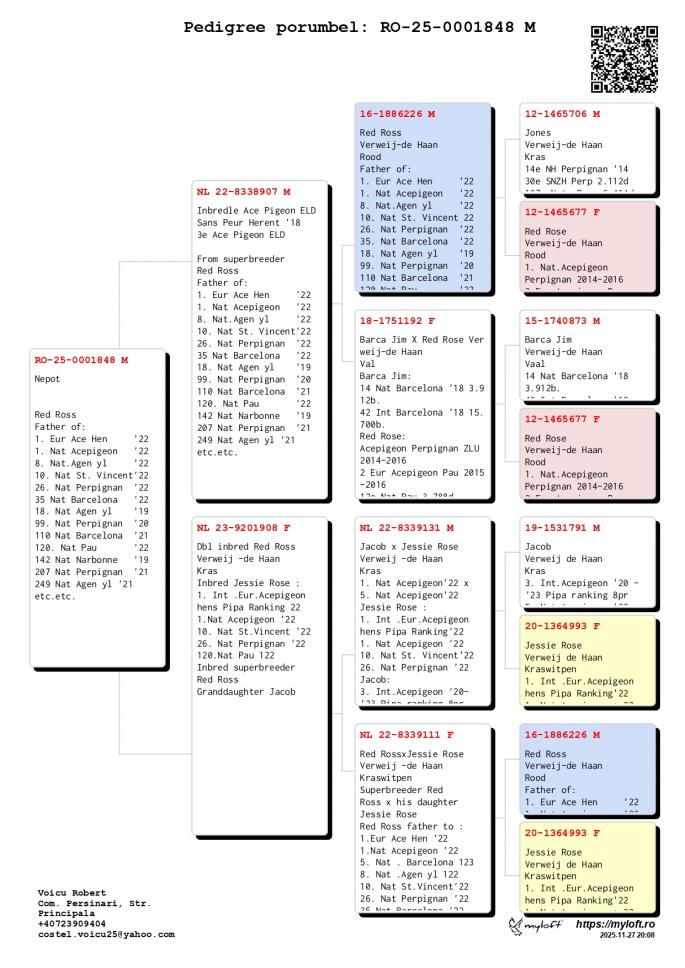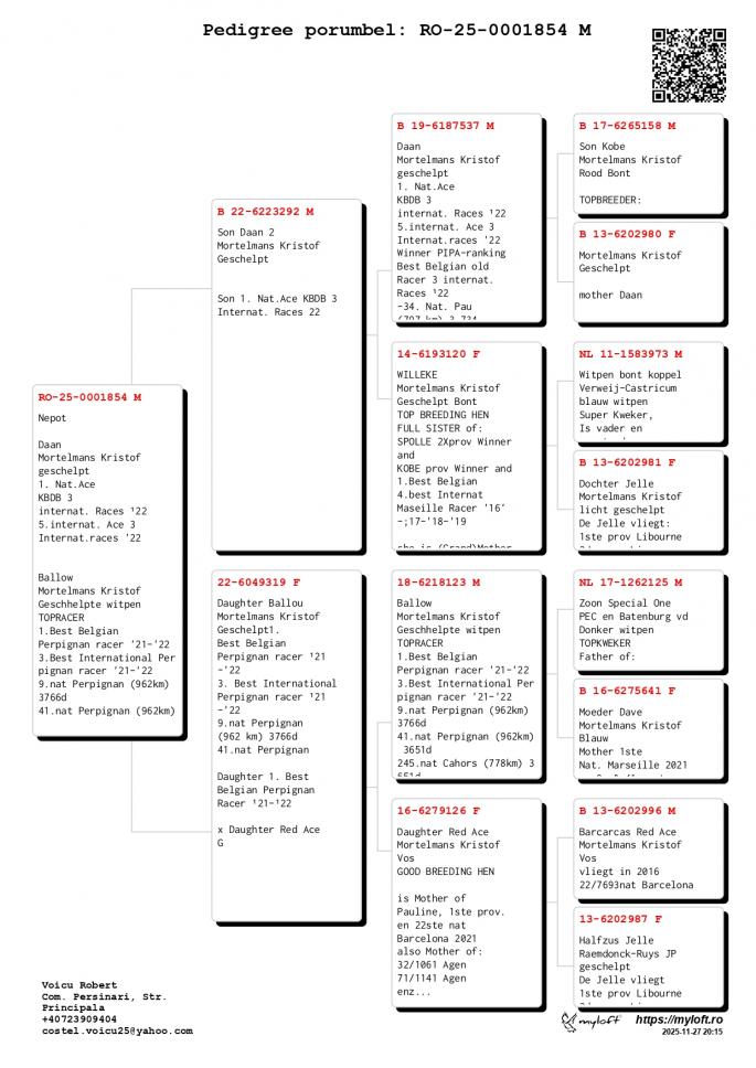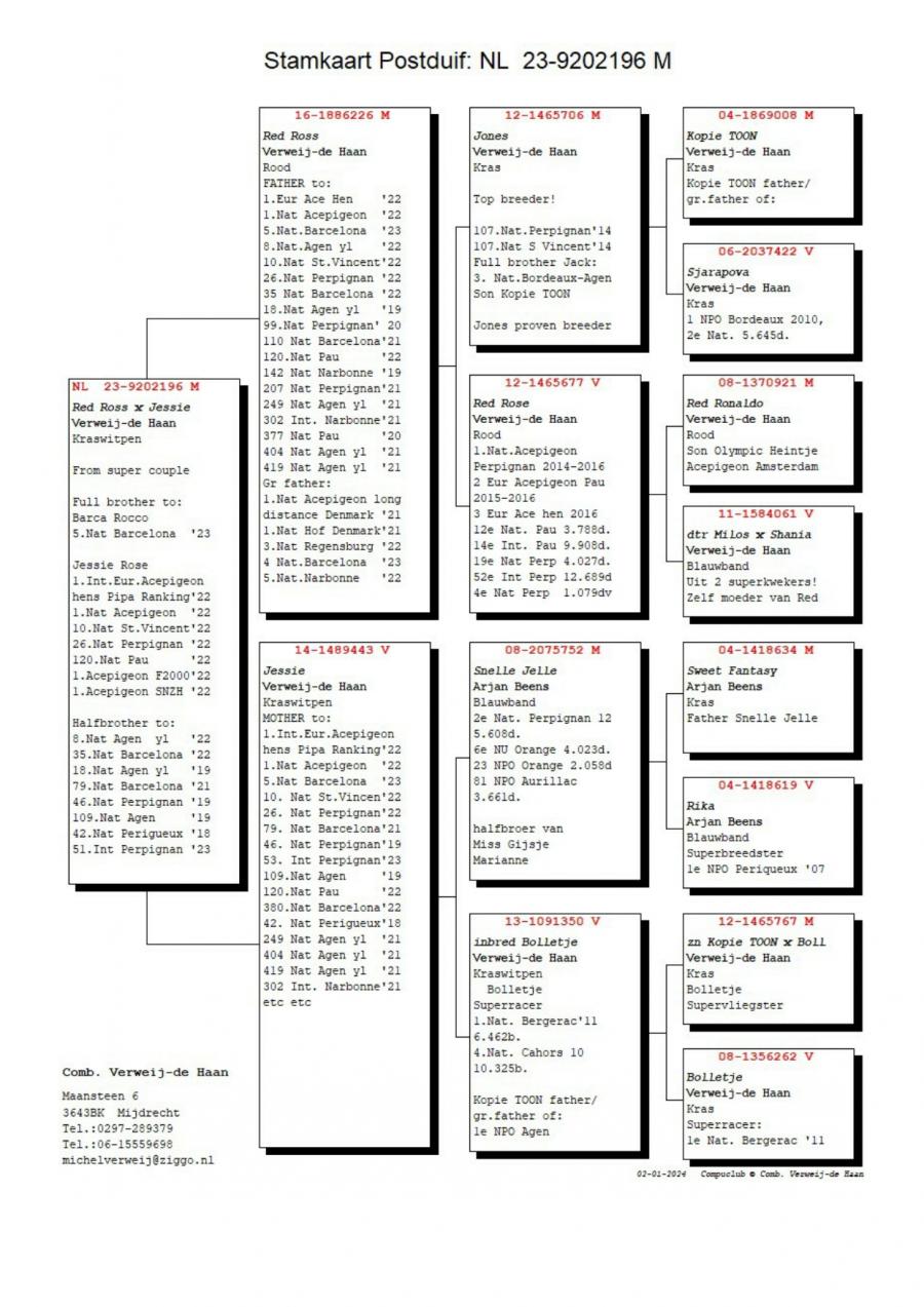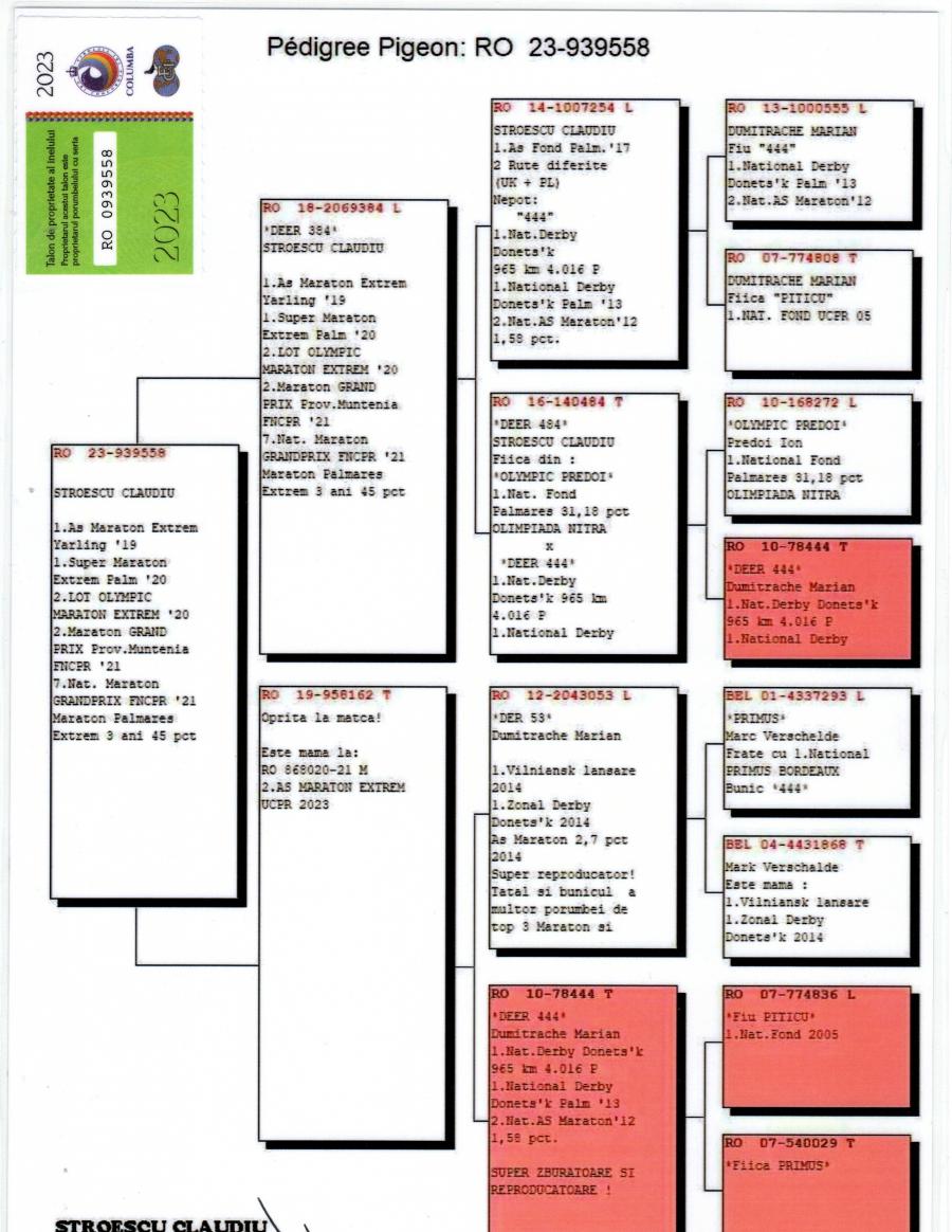 Nepot si stranepot RED ROSS - SUPER REPRODUCATOR ! Tata la : 1 Europa Ace Hen `22 1 Nat. Acepigeon `22 8 Nat. Agen YL `22 10 Nat. St. Vicent `22 26 Nat. Perpignan `22 35 Nat. Barcelona `22 18 Nat. Agen YL `19