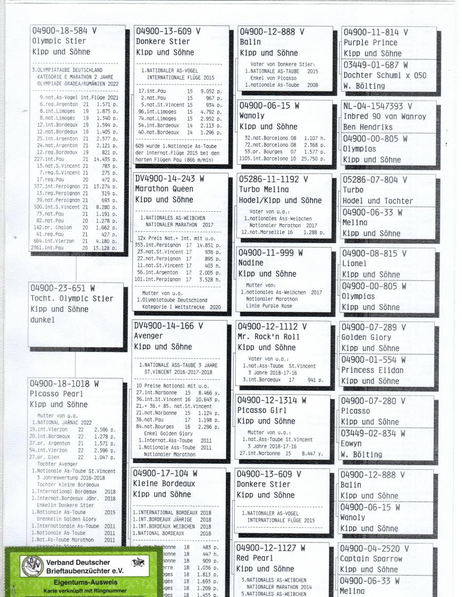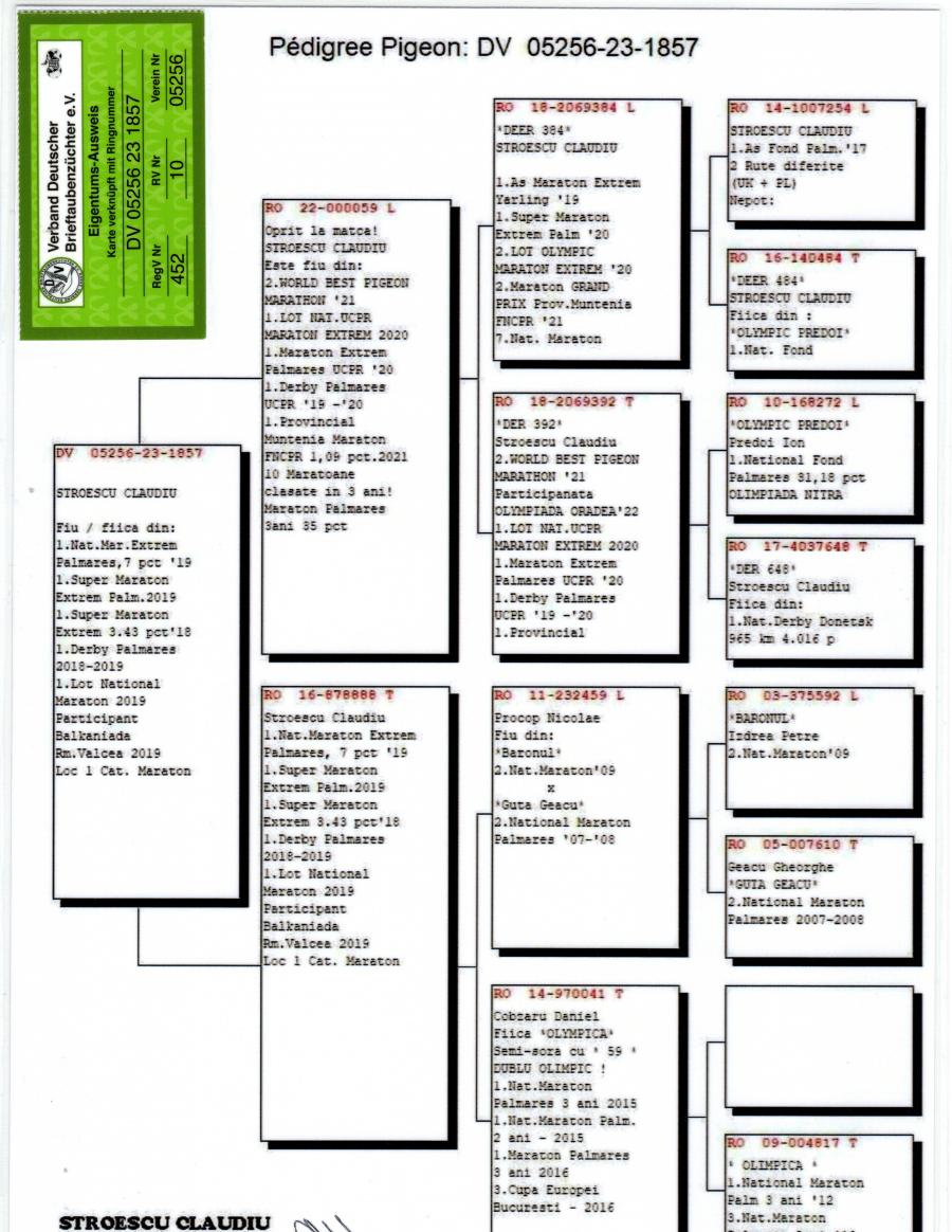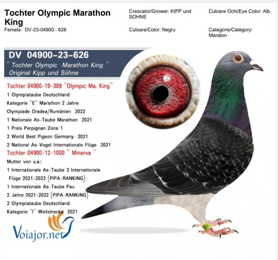 Nepot OLYMPIC MARATHON KING 1 Olympiataube Deutschland Kategorie E Marathon 2 ani Olympiade Oradea - Romania 2022 1 Nationale AS-Taube Marathon 2021 1 Preis Perpignan 2021 ZONE 1 2 World Best Pigeon Germany `21 2 Nat. AS-Vogel Int. Fluge 2021