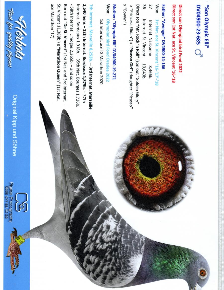 Nepot OLYMPIC ELLI 1 Olympiataube Deutschland 2020 Kategorie I Weitstrecke 1 Jahr Olympiade Oradea 2022 1 Internationale AS - Taube 2020 7 Int. Marseille 2020 8253 p.