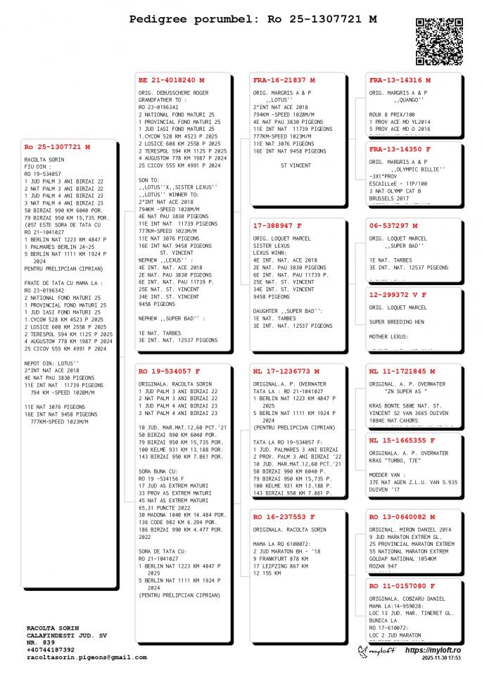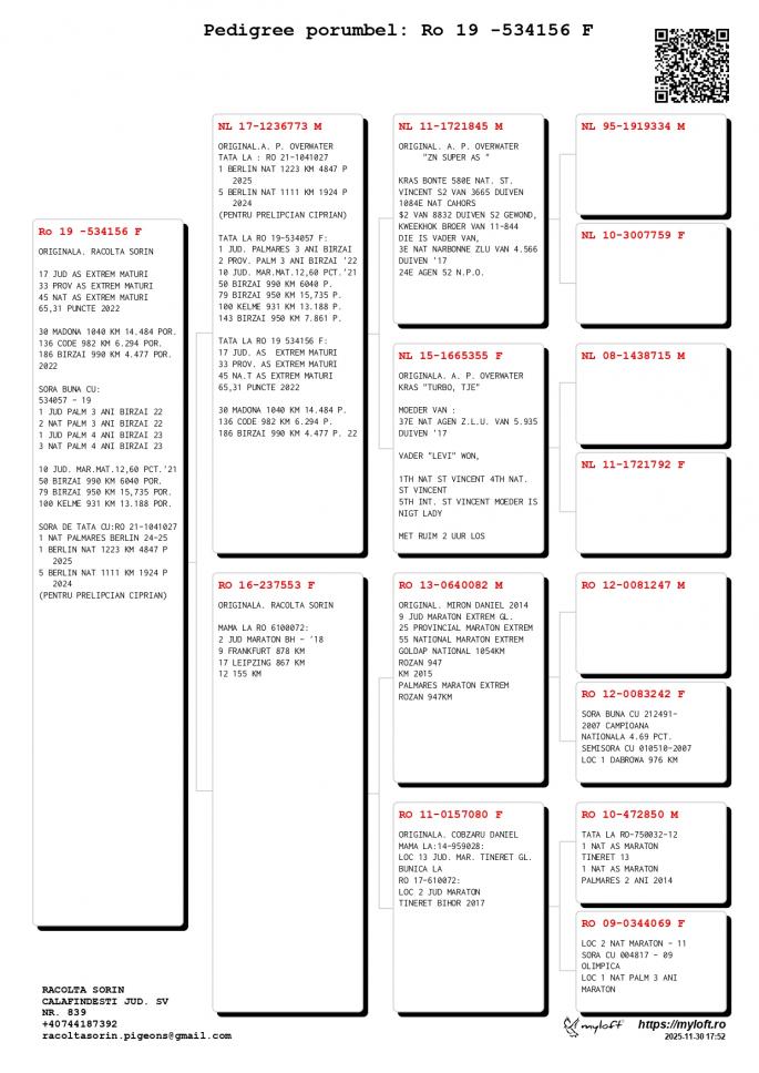 057 este sora de tata cu RO 21-1041027 1 Berlin Nat. 1223 km 4847 p. 1 Palmares Birzai 24-25 5 Berlin Nat. 1111 km 1924 p. 2024 Pentru Prelipcean Ciprian