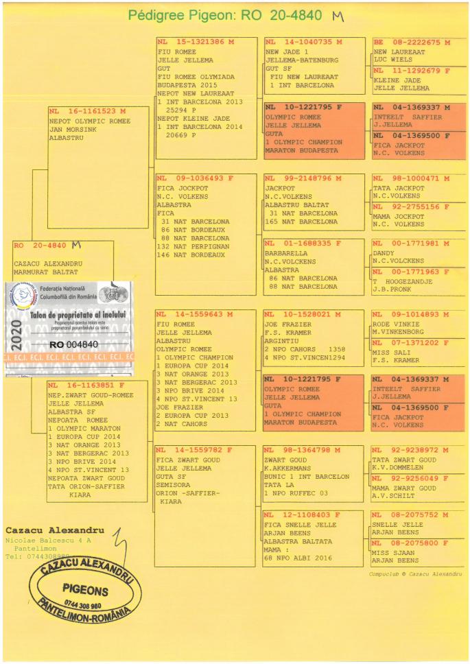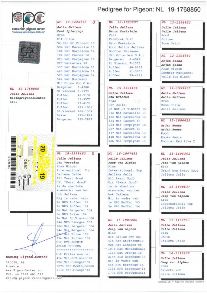 Mama este Nepoata Red Ace 1e Ace Pigeon 3 ani ZLU 2007-2009 53e Narbonne 3773 p. 82e Narbonne 3816 p. 115e Narbonne 3843 p. 159e Bergearac 16041 p. 381e St. Vicent Stranepoata JEF 1 Int. Barcelona oferta curenta: - |