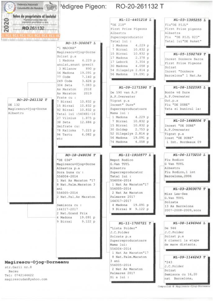 Nepot IL FENOMENO UNUL DINTRE CEI MAI BUNI PORUMBEI DE MARATON DIN ROMANIA As Maraton 2018 cu 5,27 pct. penalizare 2 Nat. Madona 19,091 porumbei 1200 km - 0.10 pct