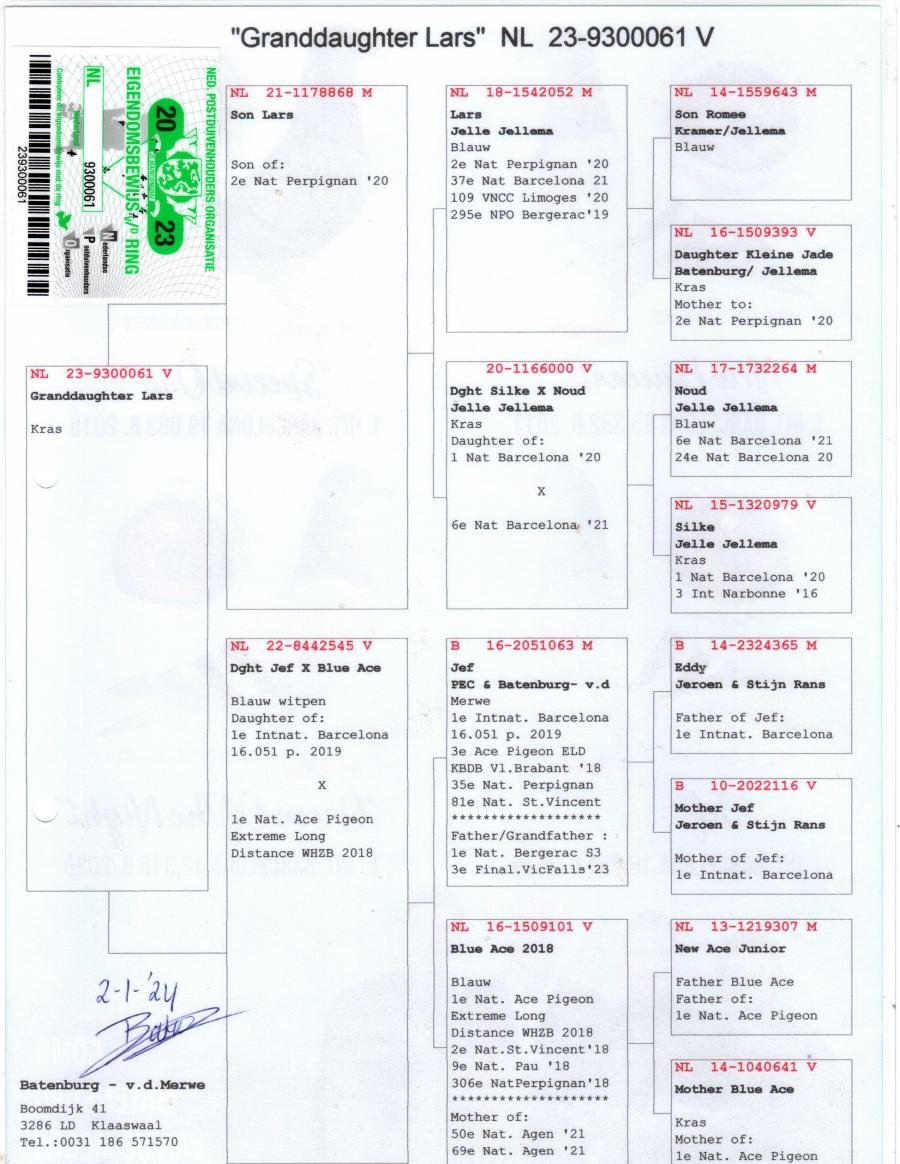 Stranepot JEF - Jeroen & Stijn Rans 1e Int. Barcelona `19 - 16051 p. 1e Ace Pigeon Extreme Long Distance Sans Peur Herent `18 3e Ace Pigeon Extreme Long Distance KBDB VL. Brarbant `18 35e Nat. Perpignan `18 - 3966 p.