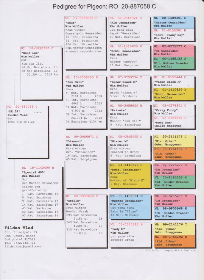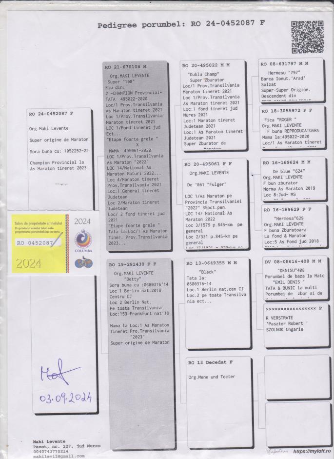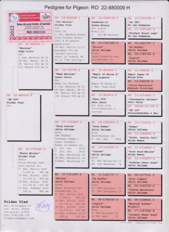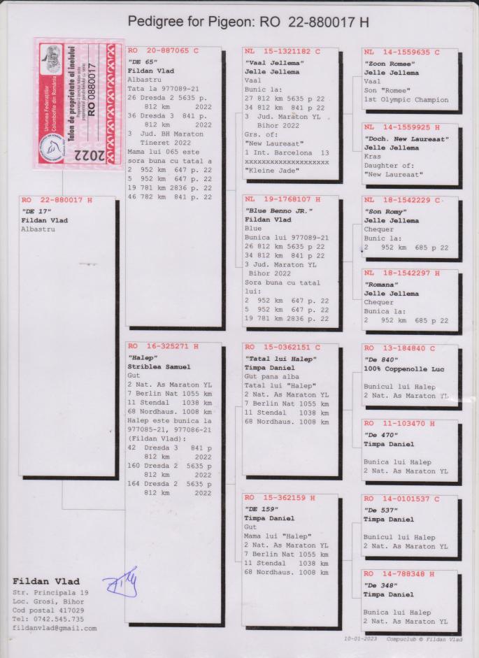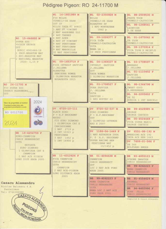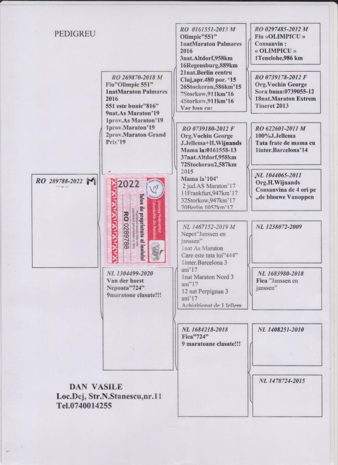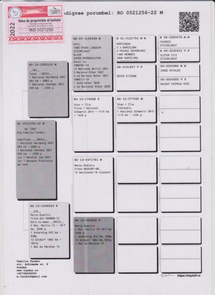 Tata :SUPER 600 Bunic la : 4061444-18 1 PROv. MARATON MAT 1 Buc. MARATON MAT 2 NATIONAL MARATON 2020 – 1,15 P Mama :NEPOATA EURO DIAMOND 1 OLYMPIADA CAT E CHAMPION 2 NAT ACE PIGEON LONG DIST KBDB 2005 oferta curenta: Gruie Adrian |