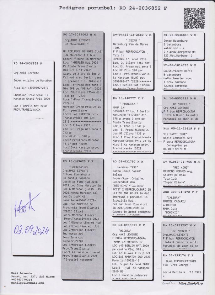 Fiica Morutan: 2 Jud Maraton GP 2021 69 Nat. Maraton GP 2021 38 Berlin 974 km 2021 151 Steandal 974 km 2021 Nepoata si stranepoata Micuta, bunica si strabunica la: 1 Nat. Maraton Tineret 24 1 Prov. Maraton Extrem Mat. 24 4 Nat. Berlin Palm. 3 ani 20 13 Nat. Maraton GP YL 22 28 Nat. As Maraton Mat. 22 Descendentii zburati in diferite crescatorii! TOP oferta curenta: Alecs97 |