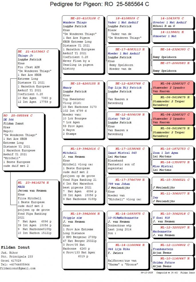 Nepot Red Ross, super reproducator, tatal lui 1 Nat. As Maraton Olanda 2022 1 Europa As Maraton Femele 2022 Dublu stranepot Kopie Toon = super reproducator oferta curenta: - |
