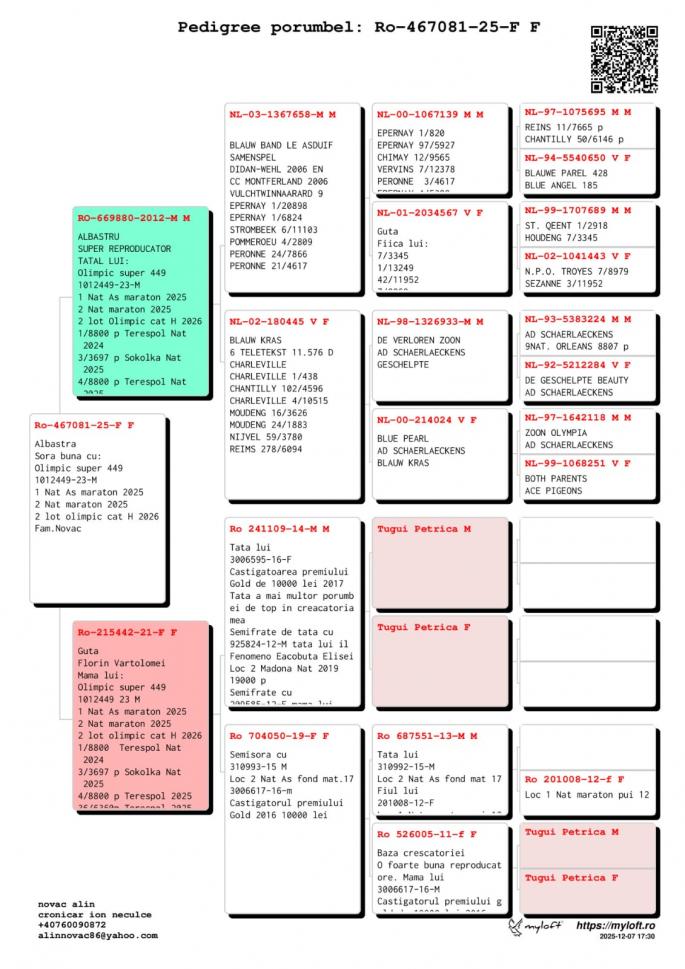 Fiu si nepot din 3 buni zburatori ! RO 18-9008639 F Maraton Palmares 3 ani RO 20-483142 F Vilnius Palmares 3 ani RO 18-5003010 M Foarte bun zburator oferta curenta: - |