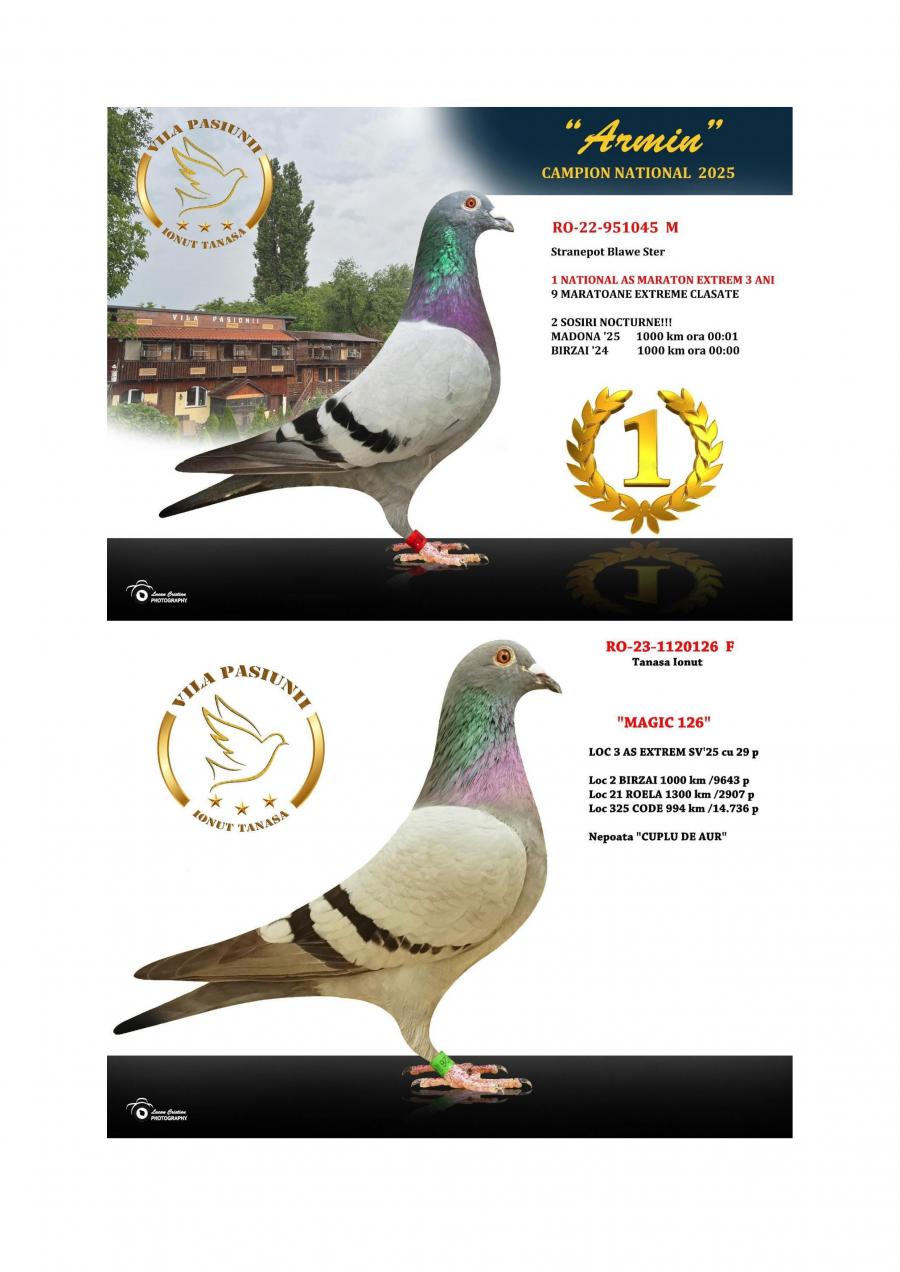 Nepot Cuplu de Aur Baza crescatoriei Vila Pasiunii Ionut Tanasa Cuplu care a reprodus campionii: Hagi Supersonic Icara 45 Tata este nepot Silke orig Jelle Jellema Mama este fiica Cuplu de Aur Sora buna cu campionii: Hagi 14 maratoane clasate 3 sosiri nocturne Goldap 23 Birzai 24 Madona 25 Loc 1 As Maraton Palm 3 ani Asoc Suceava 22-24 Loc 1 As Maraton Palm 2 ani Asoc Suceava 22-23 Loc 1 As Maraton 3 ani Provincial Moldova 22-24 Loc 4 National As Maraton 3 ani Supersonic Loc 1 As Maraton Palm 2 ani Asoc Suceava 21-22 Loc 3 As Maraton Palm 2 ani National 11 maratoane clasate 3 maratoane sosite nocturn Icara 45 Loc 1 National Interpares Madona 5 ani Loc 1 Provincia Moldova Interpares Madona 5 ani Loc 1 Maraton Extrem 22 Club Nord Maraton Falticeni Loc 2 Palm As Extrem 3 ani Club Nord Maraton Falticeni 15 maratoane clasate 5 sosiri nocturne Kelme 00:45 Madona 00:05 Madona 22:34 Madona 24 22:36 Birzai 24 22:55