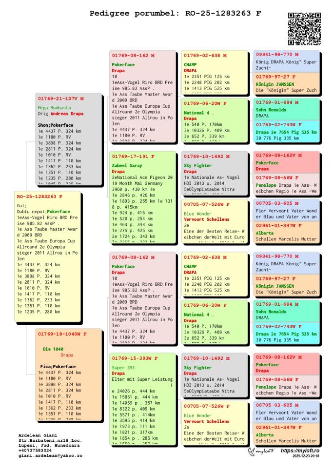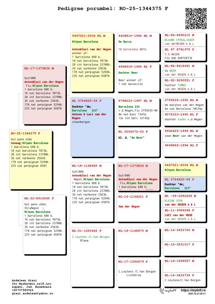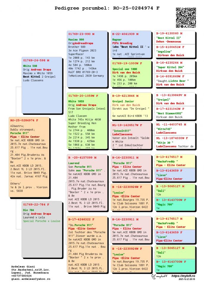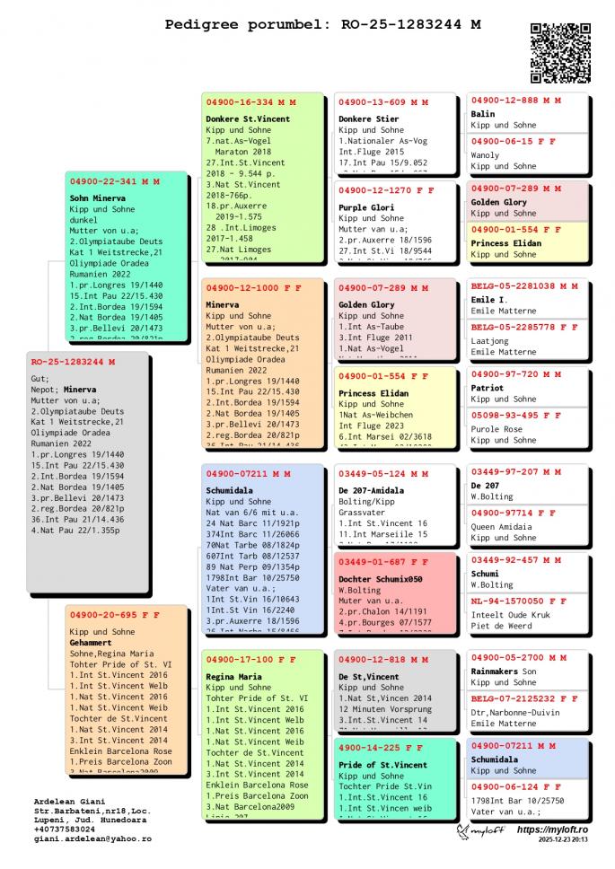 Nepot MINERVA Mama la 2e Olympiataube Deuts Kat 1e Weitstreck 21 Oliympiade Oradea Romania 2022 1 Pr. Longres 15. Int. Pau 2 Int. Bordeaux 2 Nat. Bordeaux oferta curenta: Artabant |