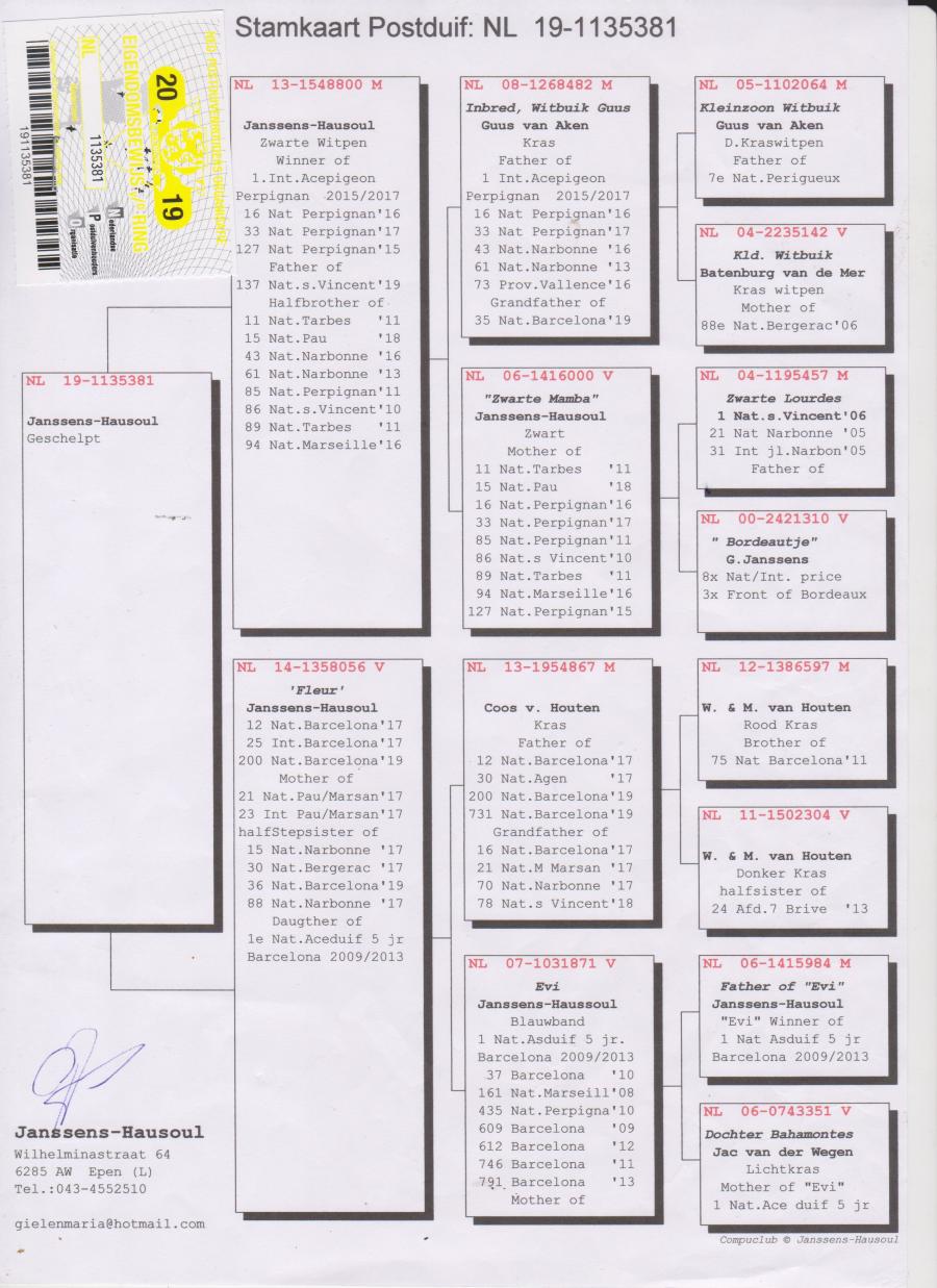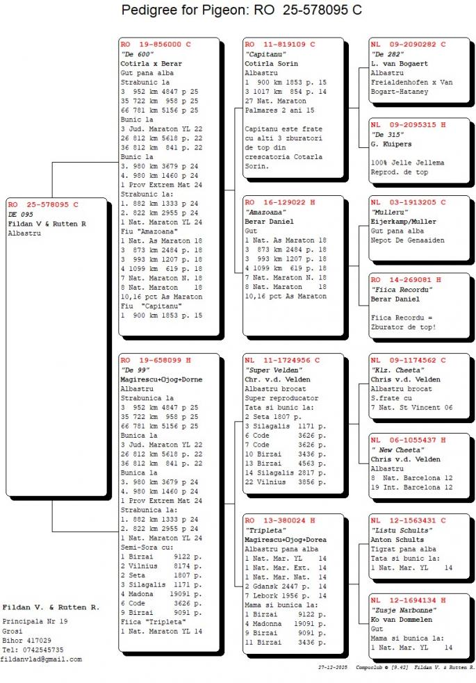Porumbeii din crescatoria Fildan V. & Rutten R au ajuns si in alte crescatorii iar referintele ultimilor ani sunt nenumarate iar rezultatele celor doi sunt intr-un trend ascendent. Va prezentam doar o parte din referintele si rezultatlele acestora: