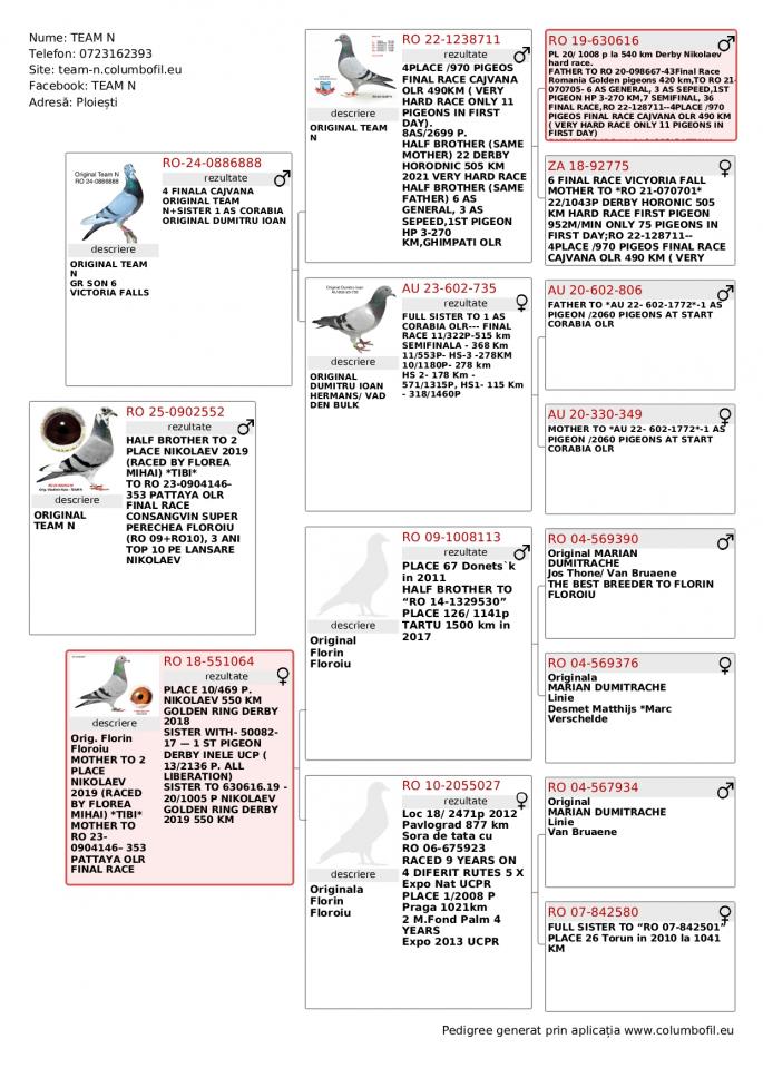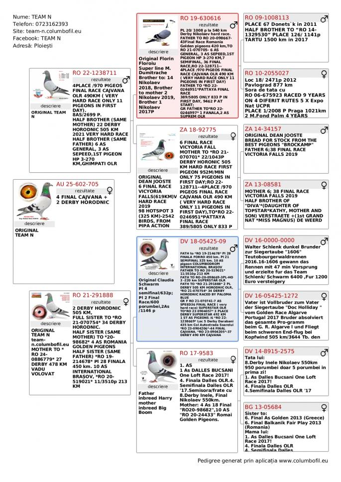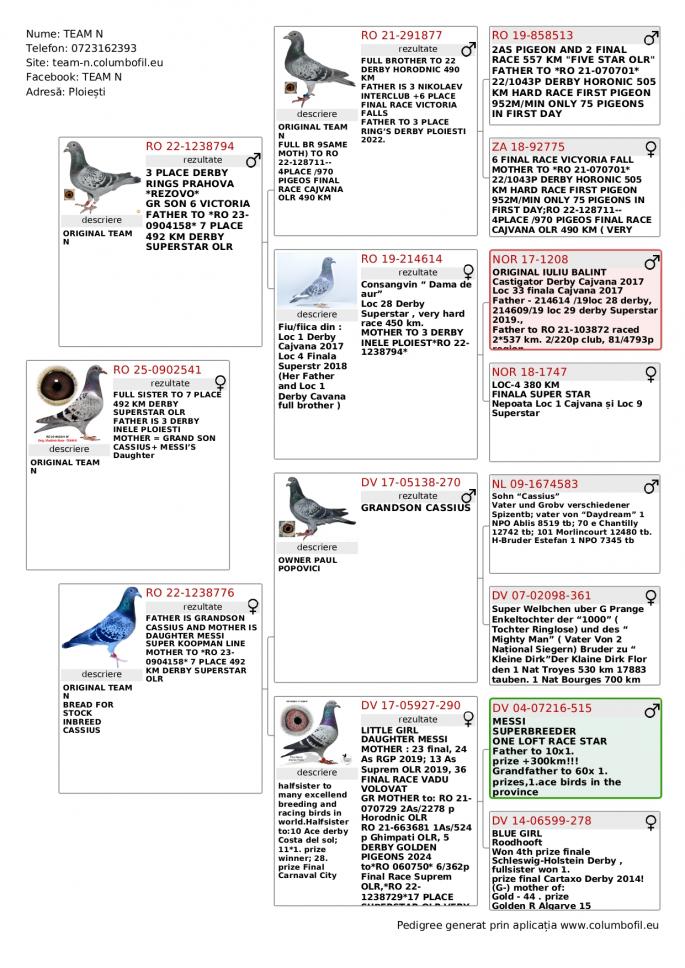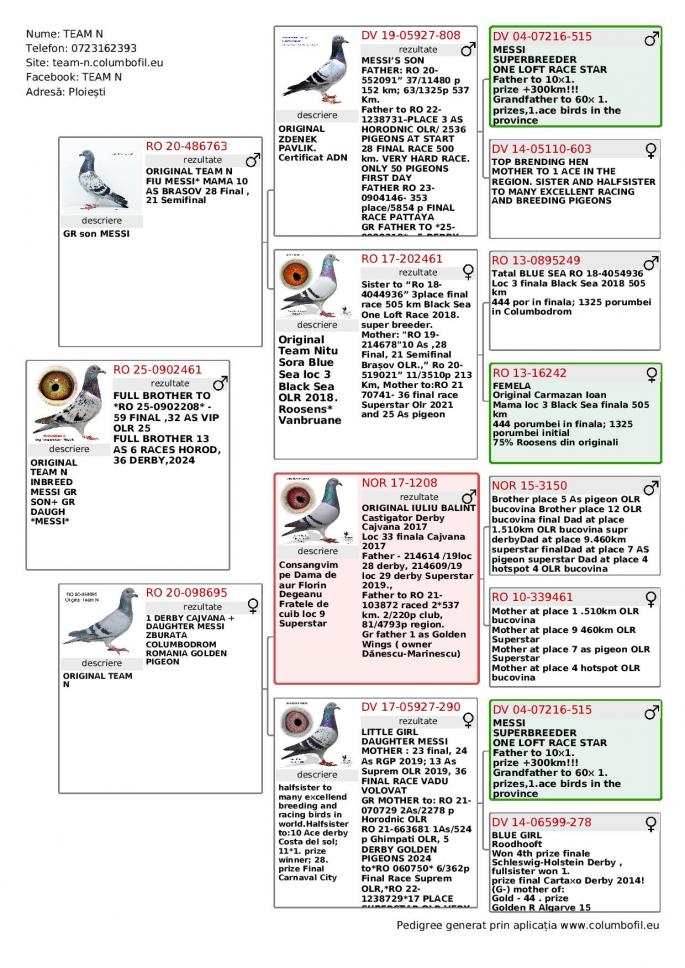 Semi-frate RO 24-886810 F 5 Derby Romania Golden Pigeon Mama la RO 25-902249 - 2 Derby Horodnic RO 25-902339 20 Final Derby Extrem OLR oferta curenta: - |