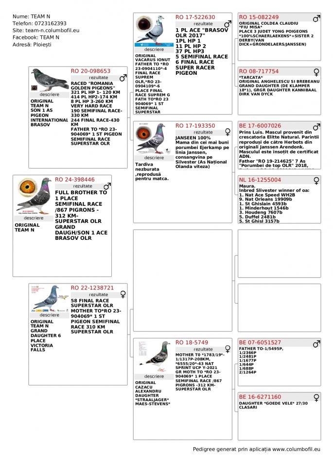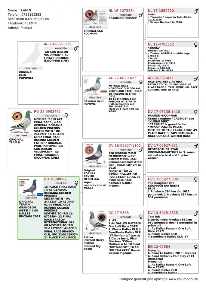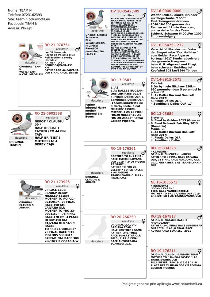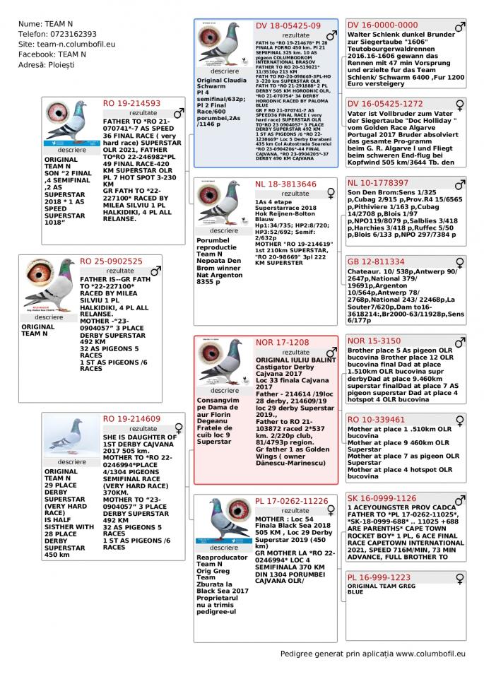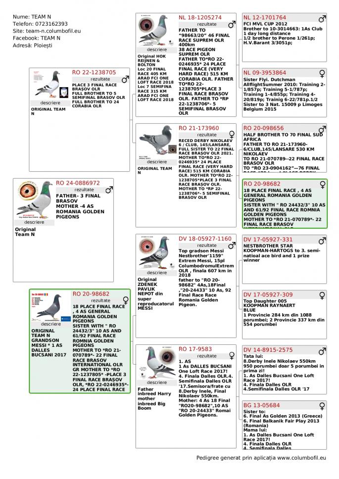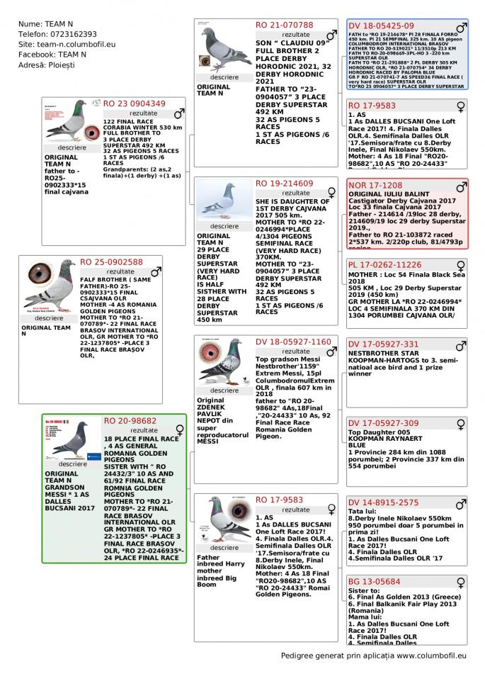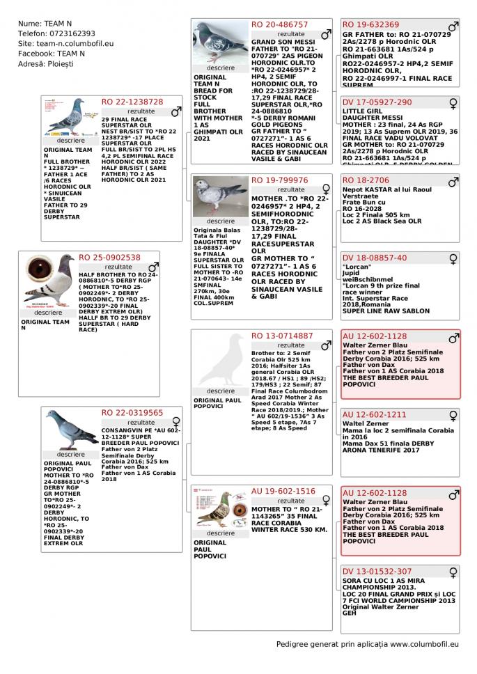 Semi-frate cu mama la RO 21-70729 1 AS Speed 2 AS General 2200 p. Horodnic OLR Semi-frate cu tata la RO 22-24695 2 Semifinala 330 km 41 Final Race 430 km oferta curenta: - |