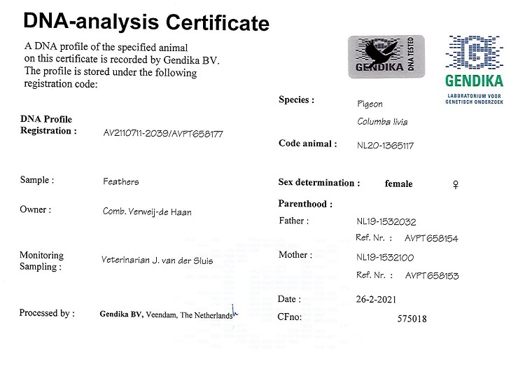 Porumbel insotit de test ADN oferta curenta: Hassy Loft |