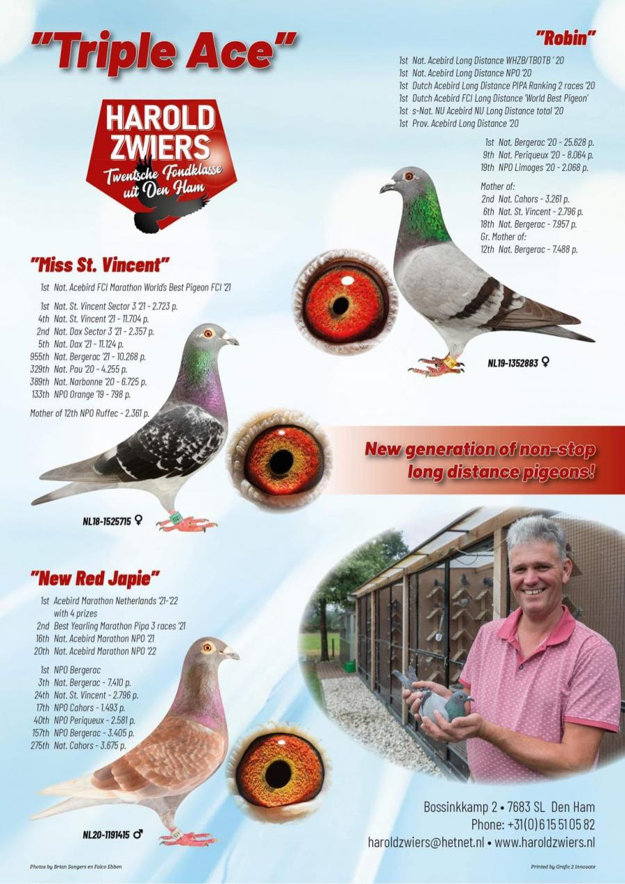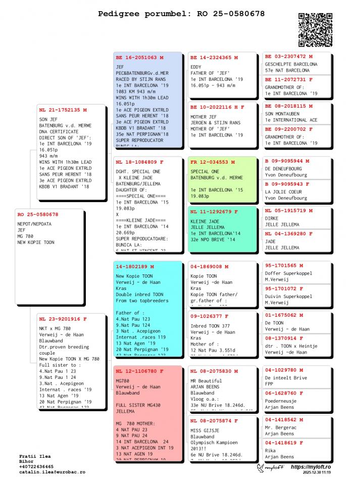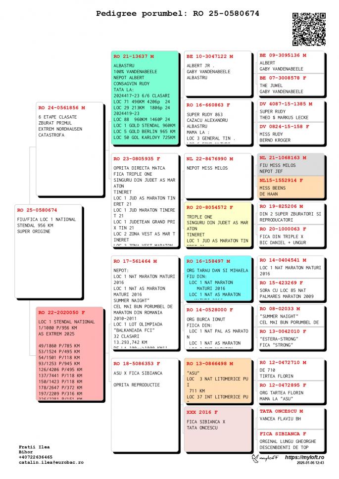 Fratii Ilea din Oradea, judetul Bihor, sunt crescatorii care au reusit sa se mentina pe podiumul judetean multi ani la rand. Pentru ca si-au dorit sa progreseze, in ultimi 2 ani au investit in porumbei cu origini excelente pentru categoria maraton si maraton extrem. Au fost importati porumbei de la Jelle Jellema, Rans Jeroen & Stijn, Batenburg vd Merwe, Harold Zwiers etc.