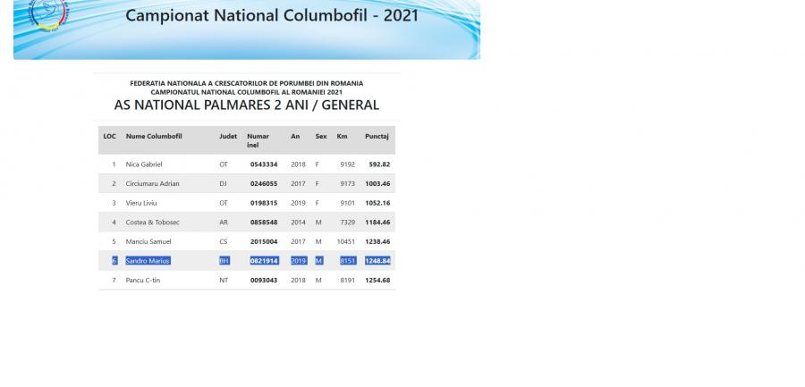 *REZULTATE 2021 ZONALE SI NATIONALE*