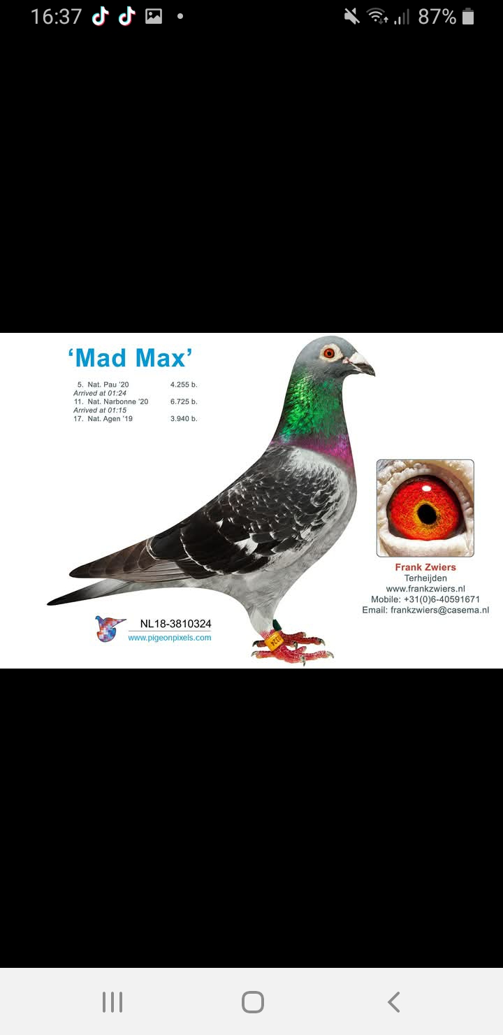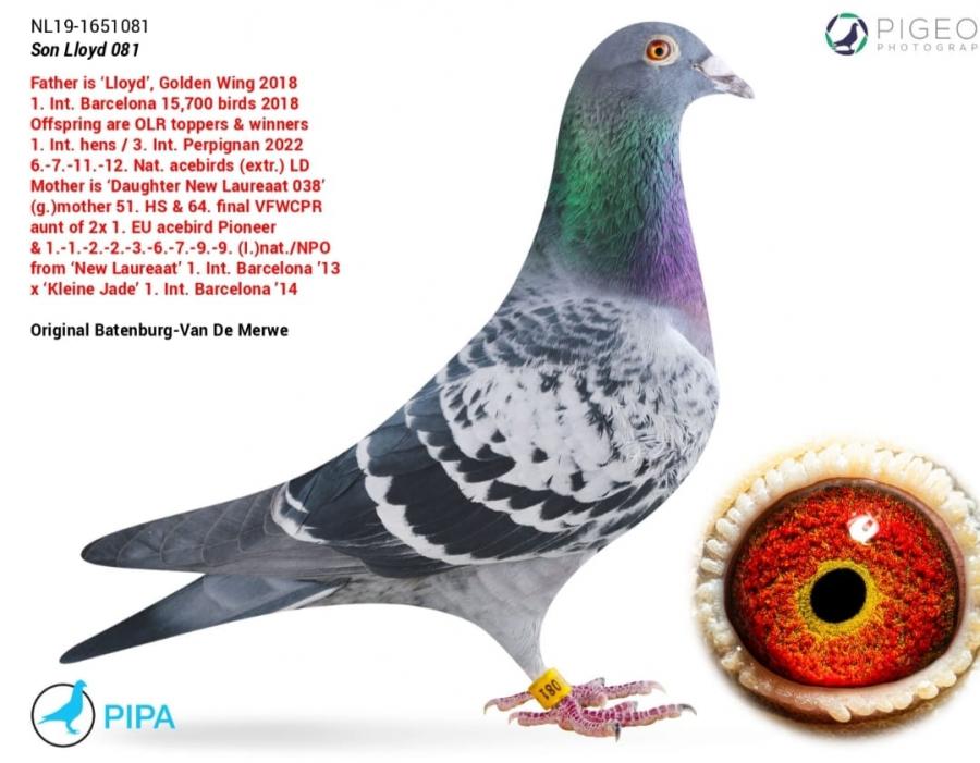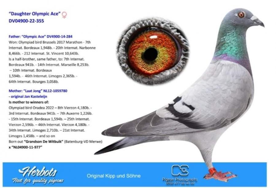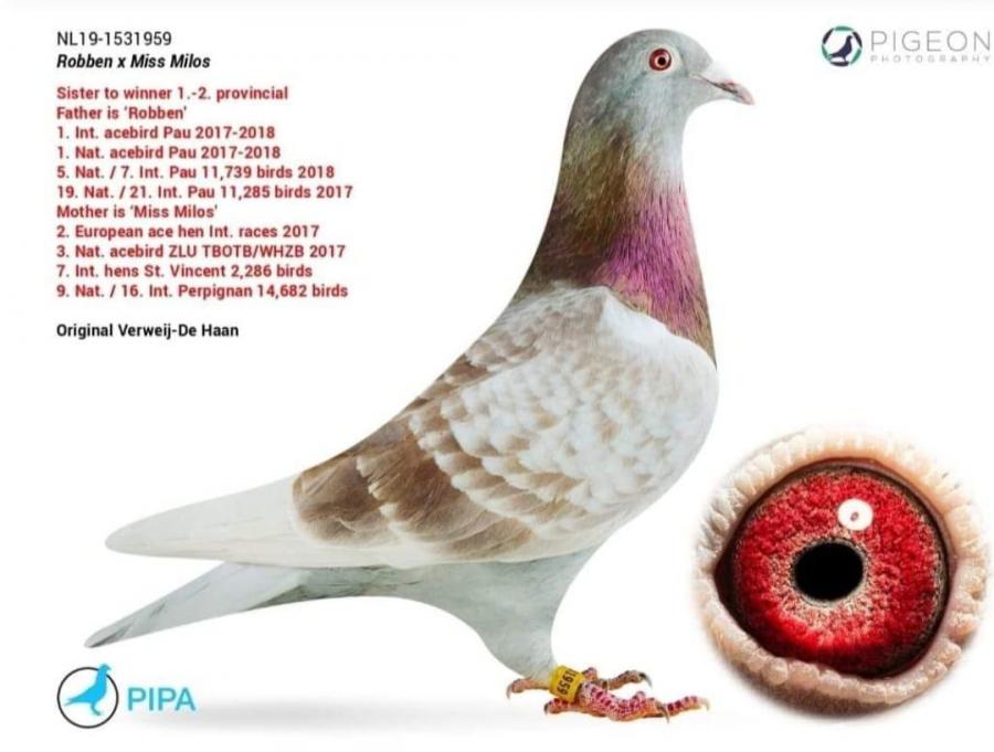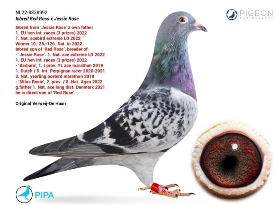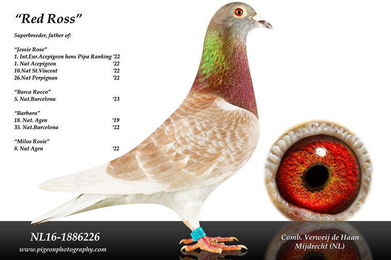 Tata este fiu RED ROSE - Verweij-de Haan 1 Nat. Acepigeon perpignan `14-`15 2 Euro Acepigeon Pau 12 Nat. Pau 3788 p. 14e Int Pau 9908 p. 19e Nat. Perpignan 4027 p. Bun Reproducator ! Fiu JESSIE ROSE 1 Int. Europa Acepigeon Hens Pipa Ranking 2022 1 Nat. Acepigeon `22