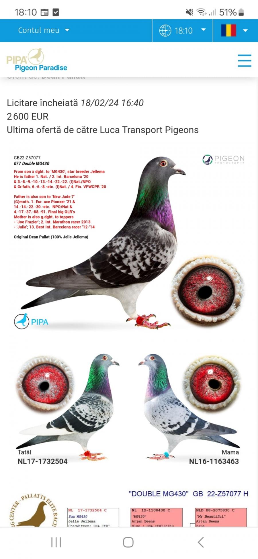 Mama este nepoata RED ROSE - Verweij-de Haan 1 Nat. Acepigeon perpignan `14-`15 2 Euro Acepigeon Pau 12 Nat. Pau 3788 p. 14e Int Pau 9908 p. 19e Nat. Perpignan 4027 p. Nepoata JESSIE ROSE 1 Int. Europa Acepigeon Hens Pipa Ranking 2022 1 Nat. Acepigeon `22 Nepoata CATHY Loc 1 As Maraton Olanda 2021 oferta curenta: Alin Ilie |