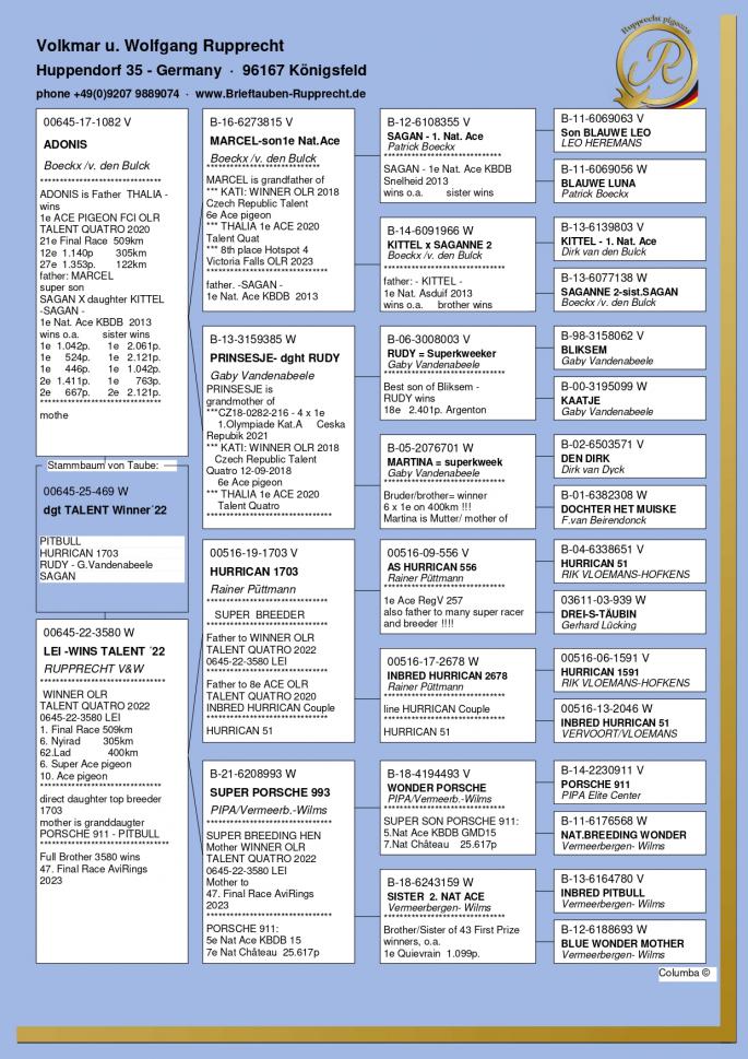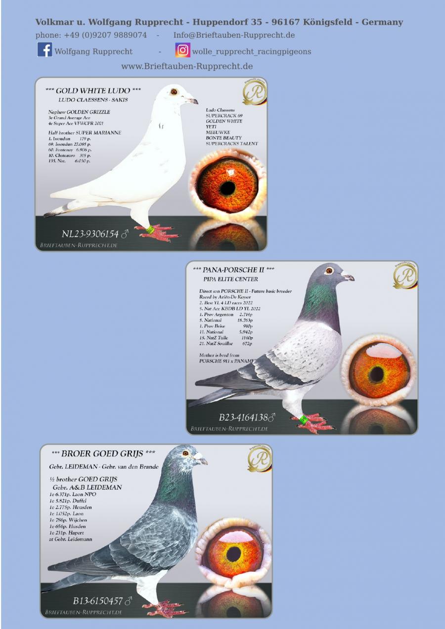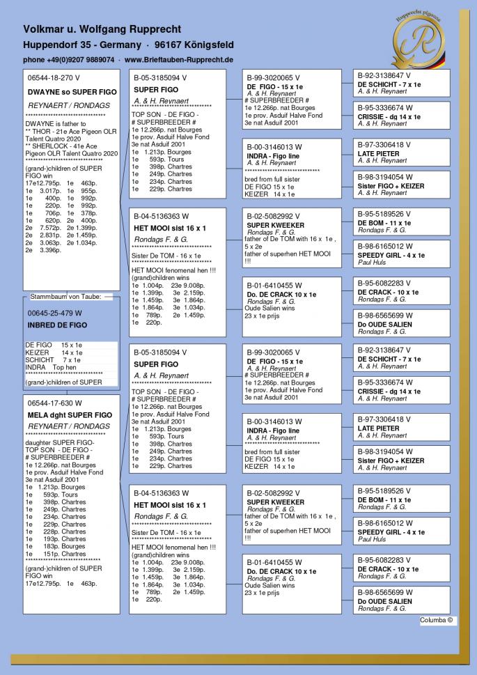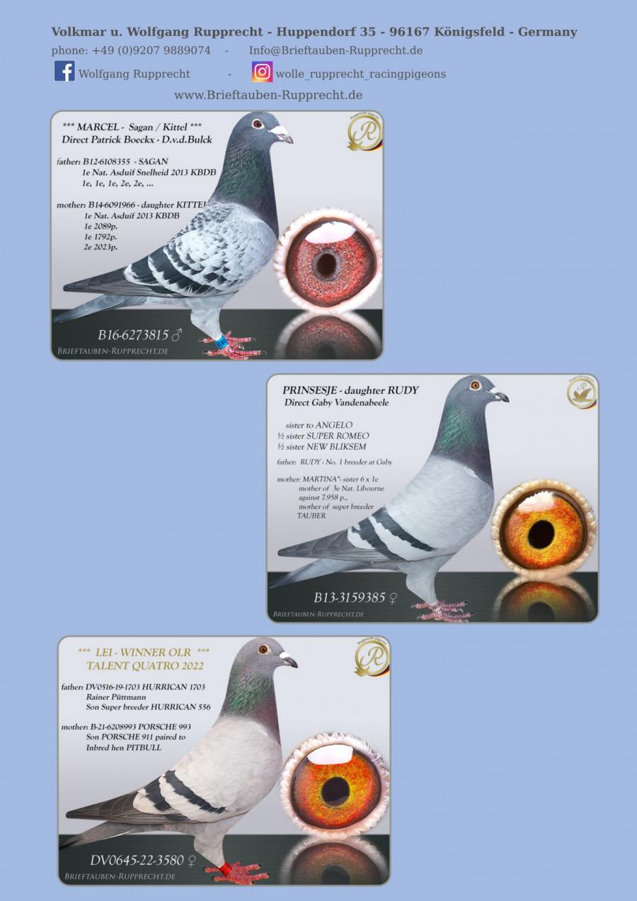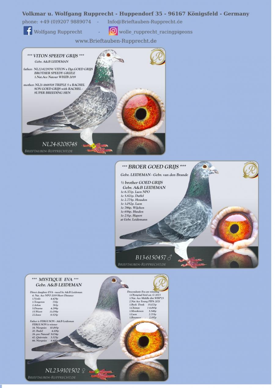 Stranepot Best Kittel 1 Nat. As Viteza Belgia 2017 6 Nat. As Viteza Belgia 2016 Stranepot Best Kittel II 1 Nat. As Viteza KBDB 20 Nepot RAMBO DALI super reproducator, tata la 3. Final Derby Arona Tennerife "19 9. Prov Argenton 1329p 11. Reg Chevrainvilli 1597p 17. Reg Maisseny 1186p 19. Final Victoria Falls 2019 35. Prov Blois 2802p 47. Nat Brive 6117p 50. Nat Limoges 10783p 57. NatZ Chateauroux 6645p 62. Nat Souillac 4571p 79. Nat Bourges 19133p 4e Nat. Ace KBDB 2019 Bunica din partea mamei este consangvina pe Goede Grijs 1. NPO Laon 6,371 p 1. Duffel 5,821 b. 1. Heusden Zolder 2,775 p 1. Laon 1,052 p 1. Wijchen 786 p 1. Heusden-Zolder 656 p 1. Hapert 231 p oferta curenta: TheTopflyers |
