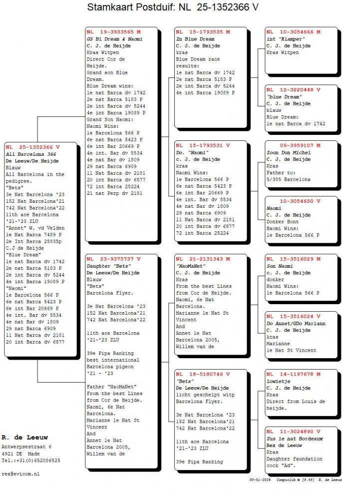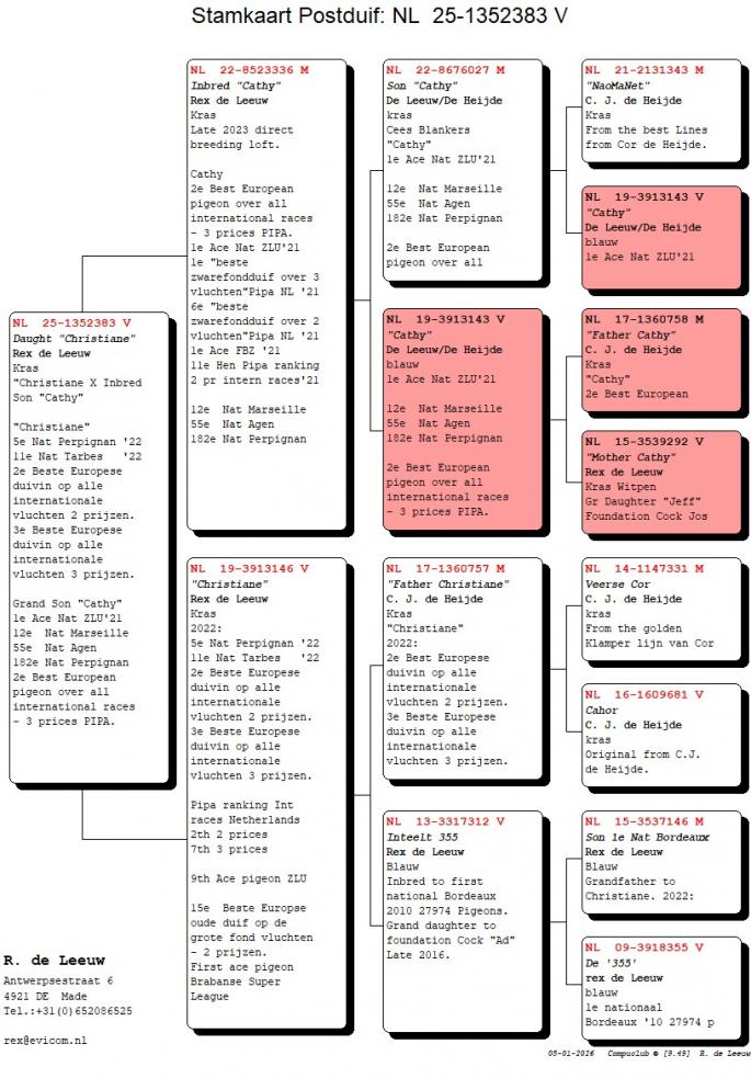 Completat cu porumbei de la Cor de Heijde, direct si prin Louis de Heijde si Louis van de Kieboom. Acestia dau rezultate excelente cu linia "Ad" — ex. "Christiane", "Daphne", "Bets", "Georgina".