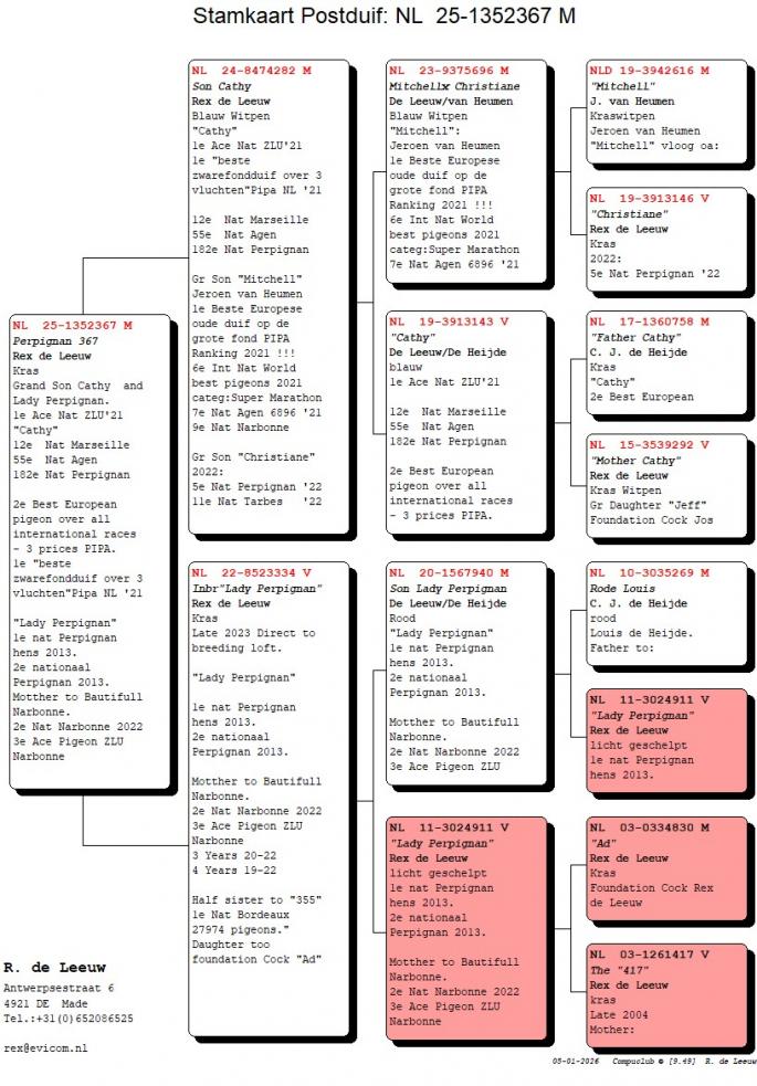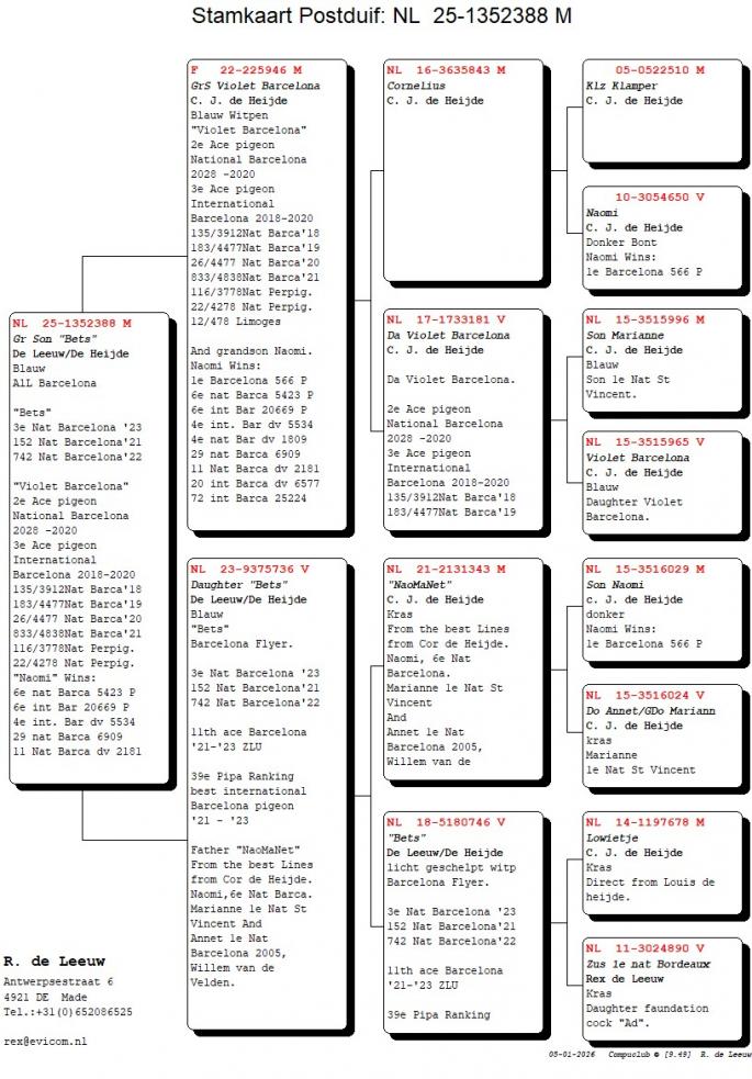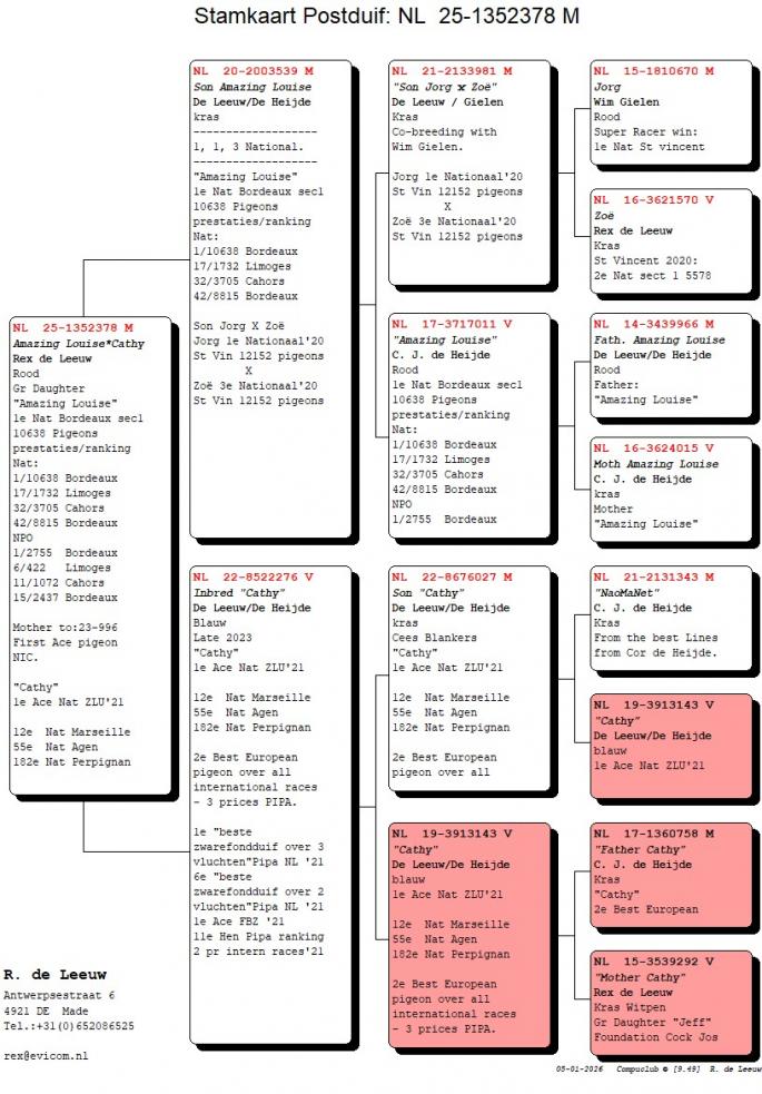 Strabunicul: 1 National Bordeaux 2020, 1 Nat Dax 2023, 16 Nat Agen, 5 Nat Perpignan, 11 Nat Tarbes, 1 As porumbel NIC Kaatsheuvel "Els" etc.