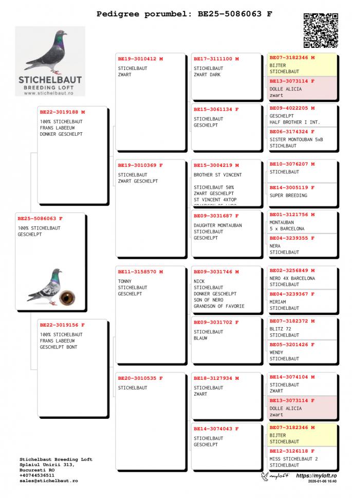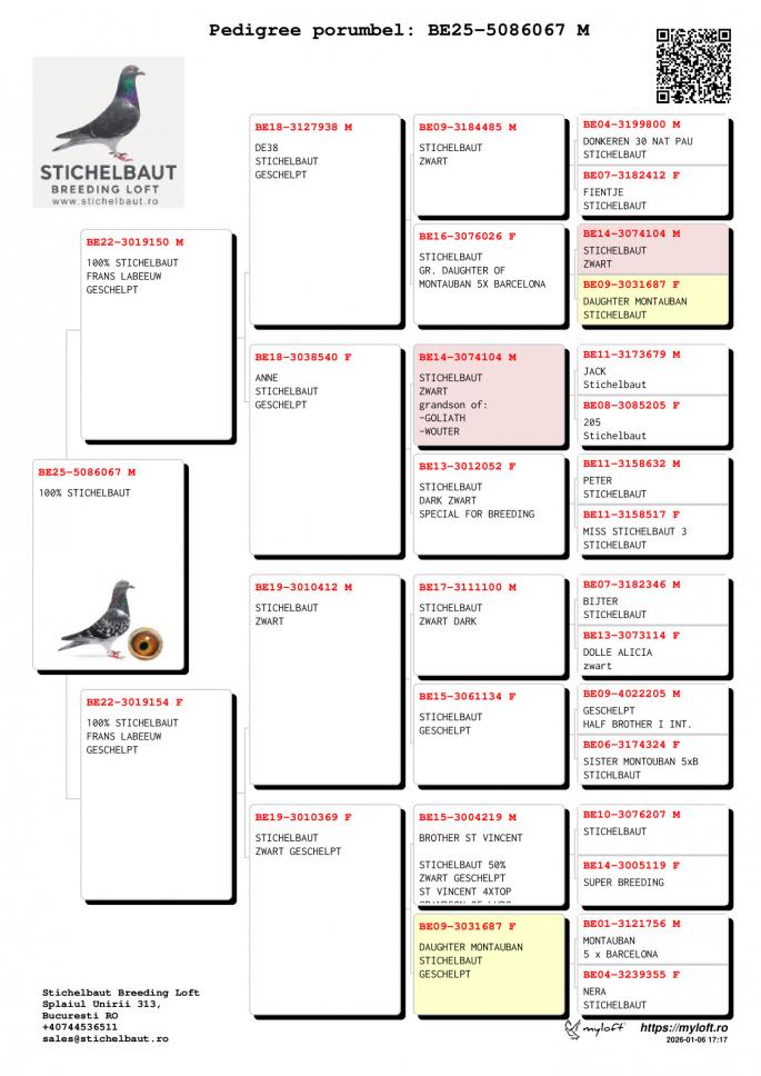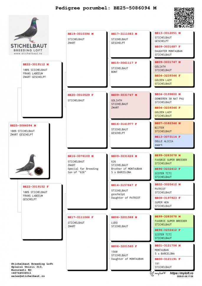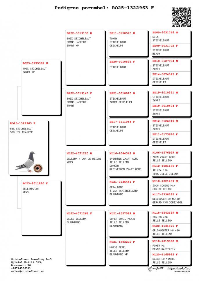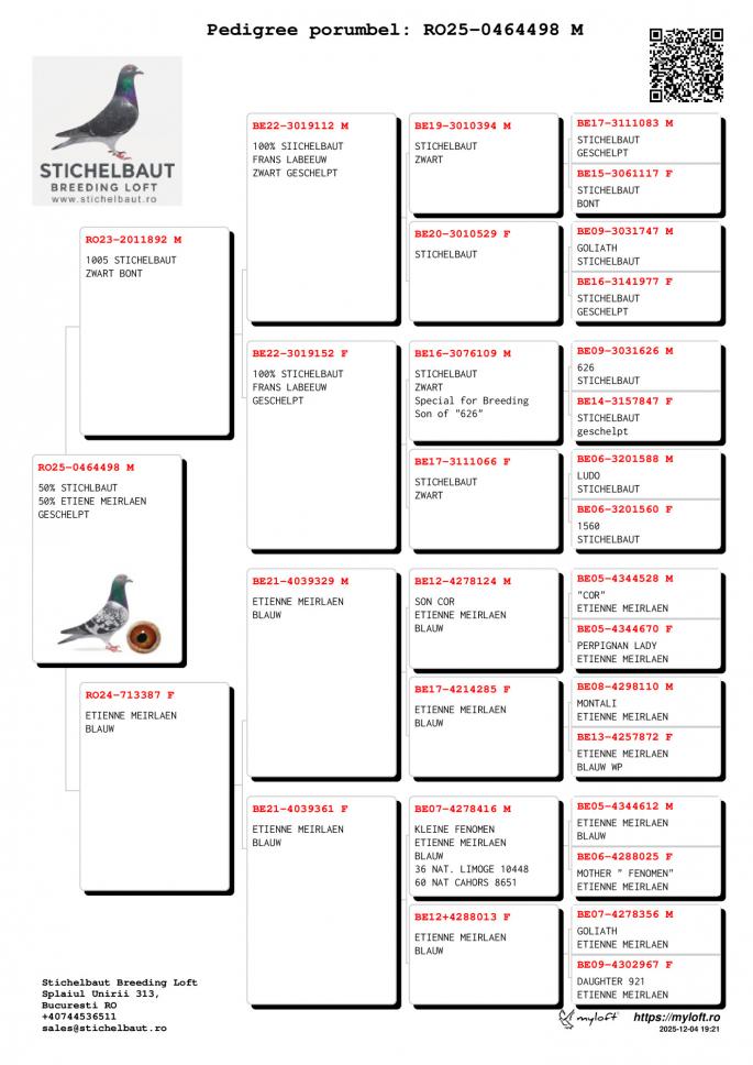 50% Stichelbout 50% Jele Jelema/ Cor de Heijde Tata 100% Stichelbaut Linie Mountanban, Bijter, Nero Nero 4 x Barcelon In pedigreul mamei gasim urmatorii porumbei: Zvart Goud, Coming Man Snele Jelle, MG 430..etc oferta curenta: - |