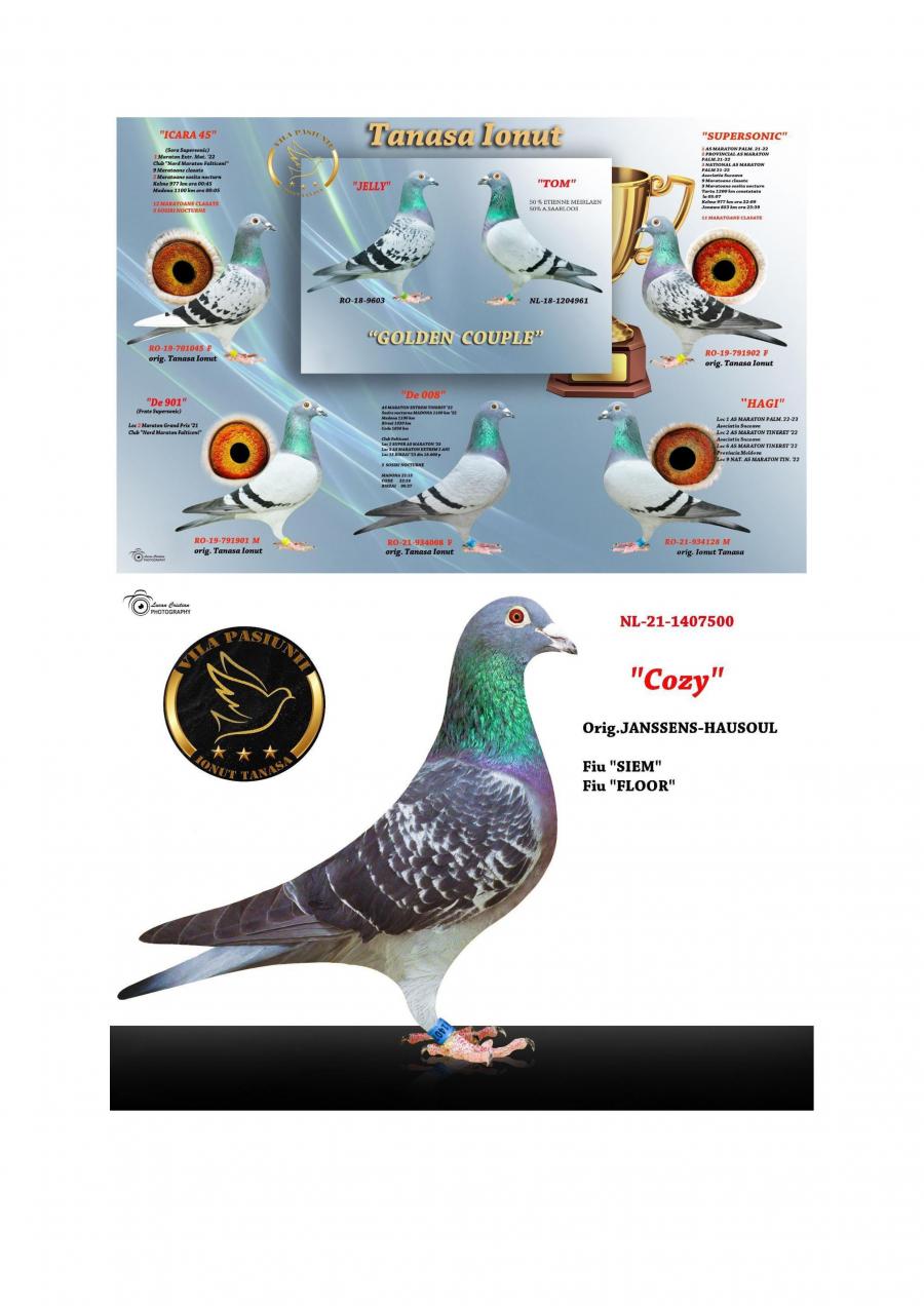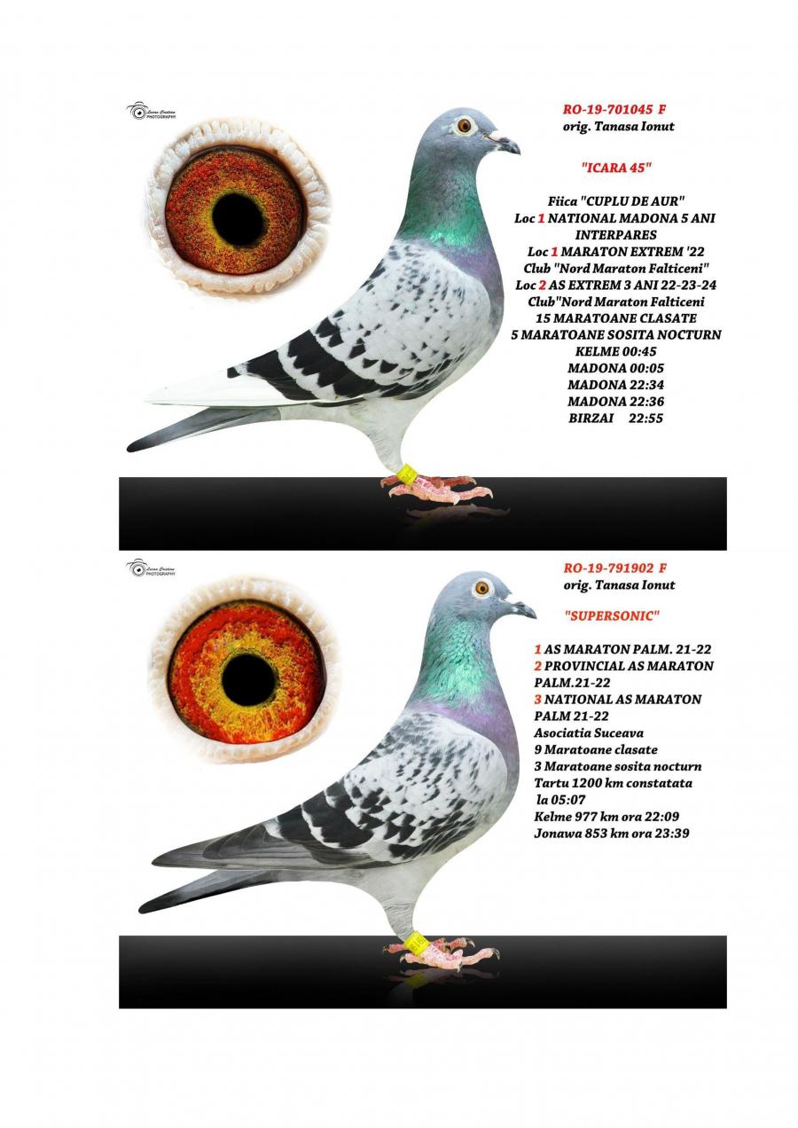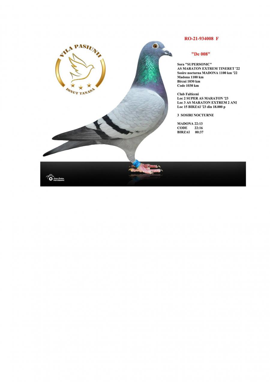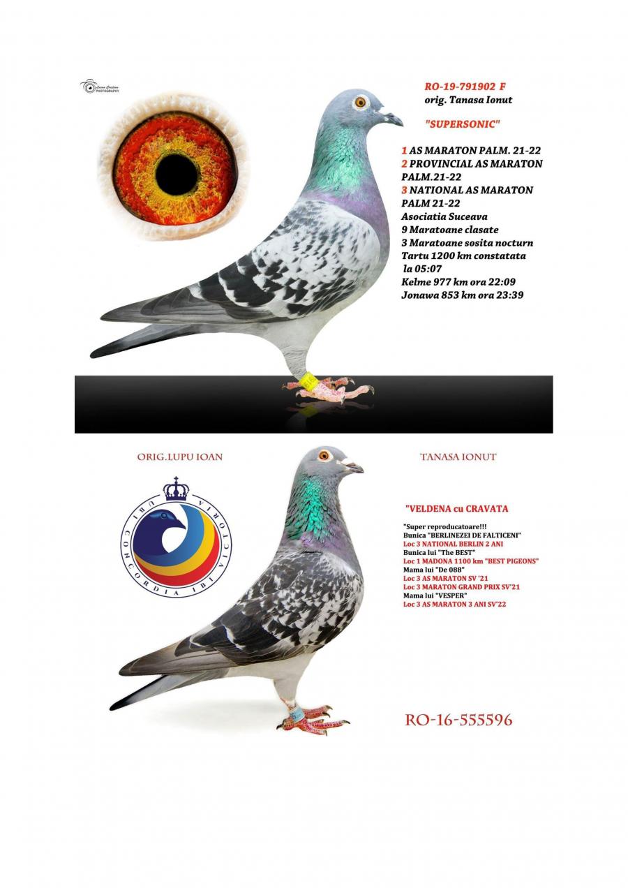 FIICA MISS CODE MISS CODE: LOC 1 CODE 25 – 994 km / 14755 p Nepoata VELDENA CU CRAVATA Super reproducatoare!!!!! Bunica BERLINEZEI DE FALTICENI LOC 3 NAT. BERLIN Palmares 2 ANI Bunica lui The BEST LOC 1 Madona 1100 km BEST PIGEON 2021 Mama lui 088 LOC 3 AS MARATON SV 21 LOC 3 MARATON GRAND PRIX SV 21 Mama lui VESPER LOC 3 AS MARATON 3 ANI SV 22 TATA este Incest HAGI X SUPERSONIC oferta curenta: Evelinz |