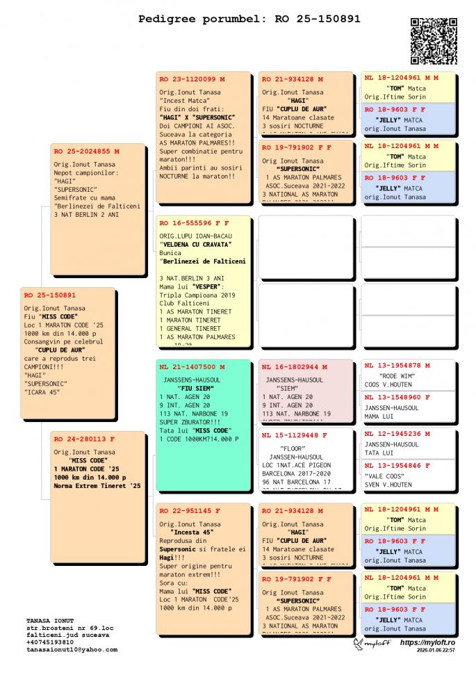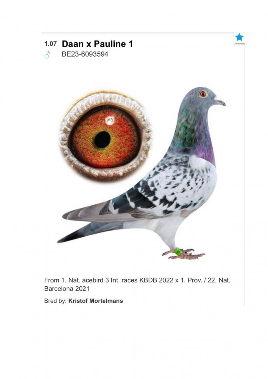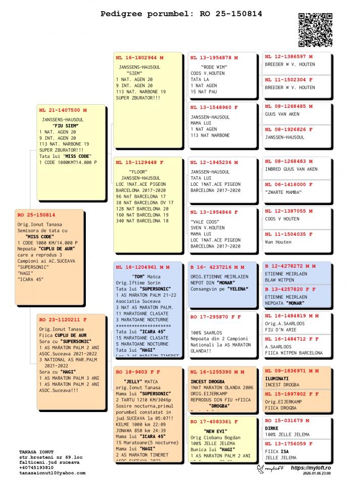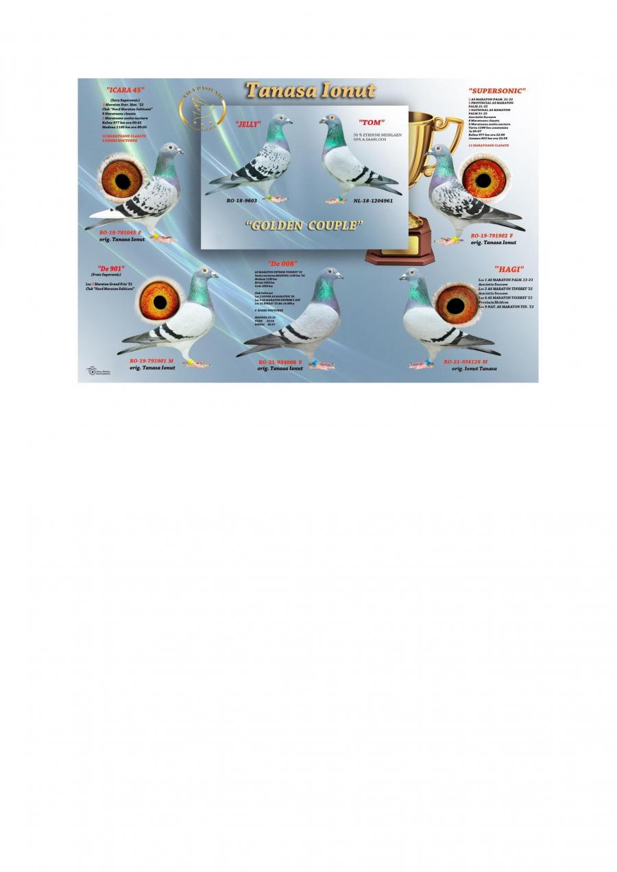 FIICA MISS CODE MISS CODE: LOC 1 CODE 25 – 994 km / 14755 p Nepoata VELDENA CU CRAVATA Super reproducatoare!!!!! Bunica BERLINEZEI DE FALTICENI LOC 3 NAT. BERLIN Palmares 2 ANI Bunica lui The BEST LOC 1 Madona 1100 km BEST PIGEON 2021 Mama lui 088 LOC 3 AS MARATON SV 21 LOC 3 MARATON GRAND PRIX SV 21 Mama lui VESPER LOC 3 AS MARATON 3 ANI SV 22 TATA este Incest HAGI X SUPERSONIC oferta curenta: Evelinz |
