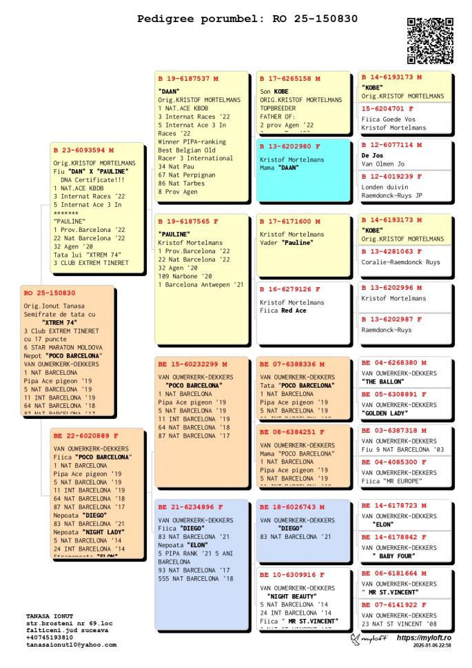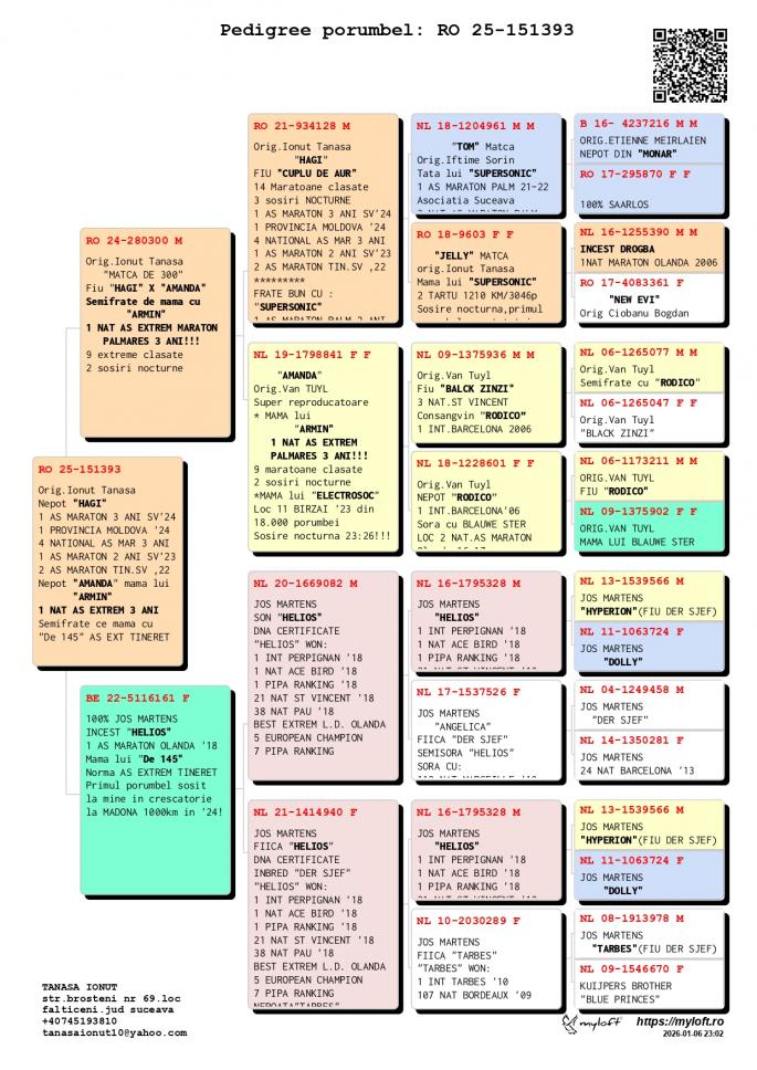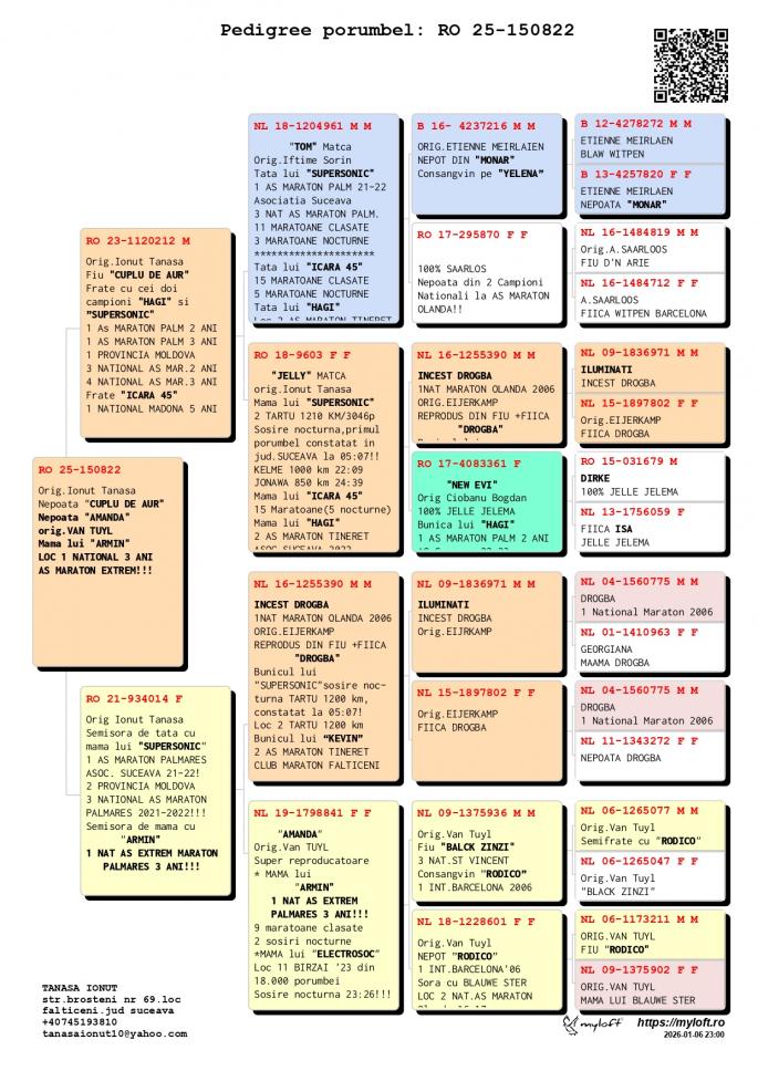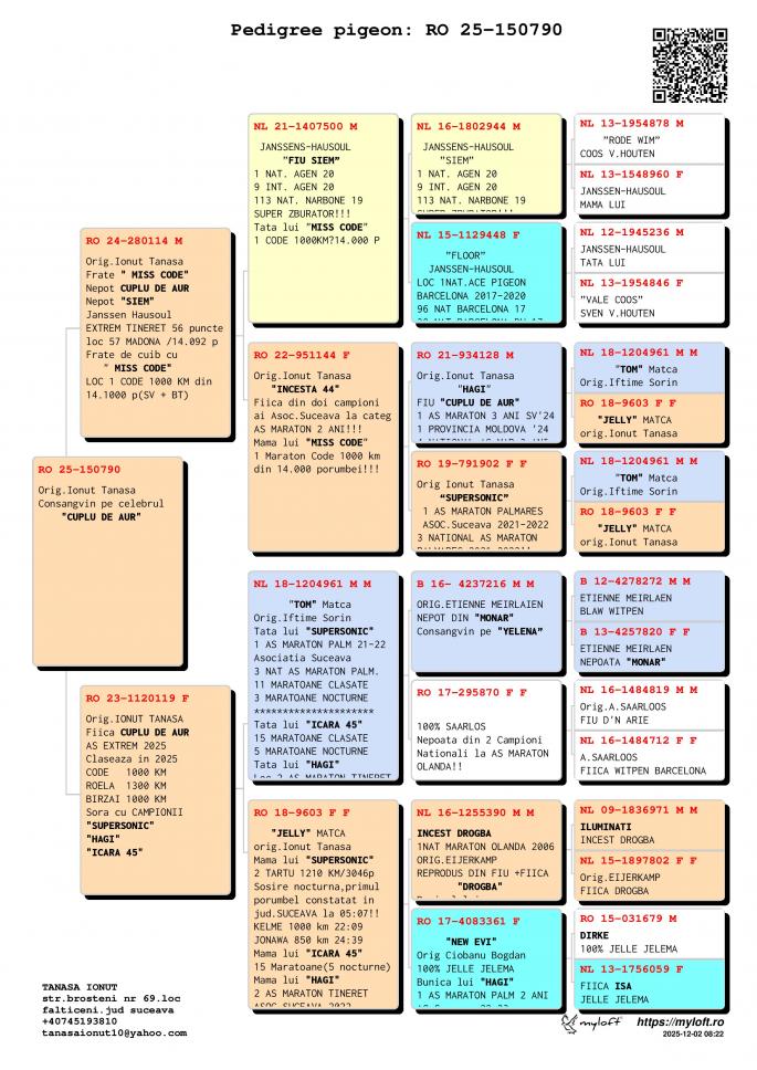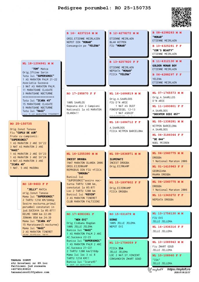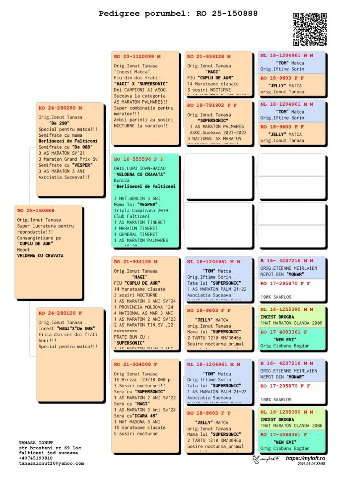 INCEST HAGI Special pentru reproductie HAGI 14 Maratoane Clasate 3 SOSIRI NOCTURNE GOLDAP 23 BIRZAI 24 MADONA 25 LOC 1 AS Maraton Palm. 3 ANI Asoc. Suceava 22 - 24 LOC 1 AS Maraton Palm. 2 ANI Asoc. Suceava 22 - 23 LOC 1 AS Maraton 3 ANI PROVINCIAL MOLDOVA 22 - 24 LOC 4 National AS Maraton 3 ANI Nepot VELDENA CU CRAVATA Super reproducatoare!!!!! Bunica BERLINEZEI DE FALTICENI LOC 3 NAT. BERLIN Palmares 2 ANI Bunica lui The BEST LOC 1 Madona 1100 km BEST PIGEON 2021 Mama lui 088 LOC 3 AS MARATON SV 21 LOC 3 MARATON GRAND PRIX SV 21 Mama lui VESPER LOC 3 AS MARATON 3 ANI SV 22 TATA este Incest HAGI X SUPERSONIC oferta curenta: - |