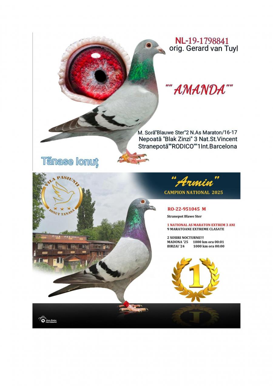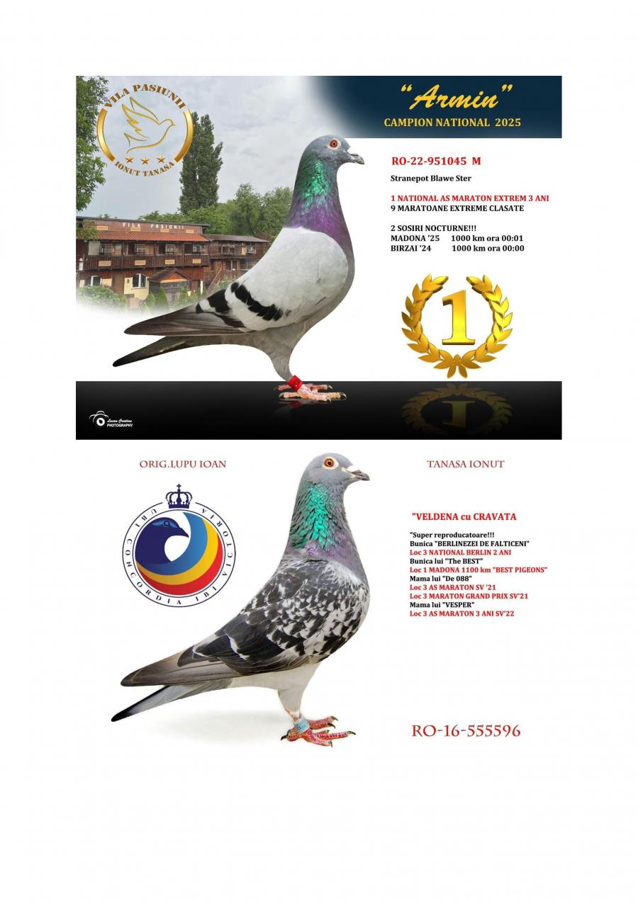 Nepoata ARMIN ARMIN: LOC 1 NATIONAL AS EXTREM 3 ANI 25 LOC 1 AS EXTREM 3 ANI ASOC SV 25 LOC 1 AS EXTREM 3 ANI PROVINCIA MOLDOVA 25 LOC 1 AS EXTREM 3 ANI CLUB NORD MARATON FALTICENI 9 MARATOANE EXTREME CLASATE SOSIRE NOCTURNA BIRZAI 24 1000 KM ORA 00:00 SOSIRE NOCTURNA MADONA 25 1000 KM ORA 00:01 NEPOATA CUPLU DE AUR BAZA CRESCATORIEI VILA PASIUNII IONUT TANASA CUPLU CARE A REPRODUS CAMPIONII HAGI SUPERSONIC ICARA 45 NEPOATA VELDANA CU CRAVATA SUPER REPRODUCATOARE BUNICA BERLINEZEI DE FALTICENI LOC 3 NATIONAL BERLIN PALMARES 2 ANI BUNICA LUI THE BEST LOC 1 MADONA 1100 KM BEST PIGEON 2021 MAMA LUI 088 LOC 3 AS MARATON SV 21 LOC 3 MARATON GRAND PRIX SV 21 MAMA LUI VESPER LOC 3 AS MARATON 3 ANI SV 22 oferta curenta: Bobi2 |