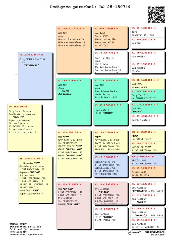 Semifrate cu EDEN 75 EDEN 75 Maraton EXTREM 6 puncte AS EXTREM 55 puncte 6 maratoane clasate 2 sosiri nocturne Tata orig. Gerard Van Tuyl Mama nepoata JEF – Battemburg nepoata Helios – Jos Martens oferta curenta: - |