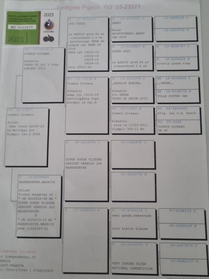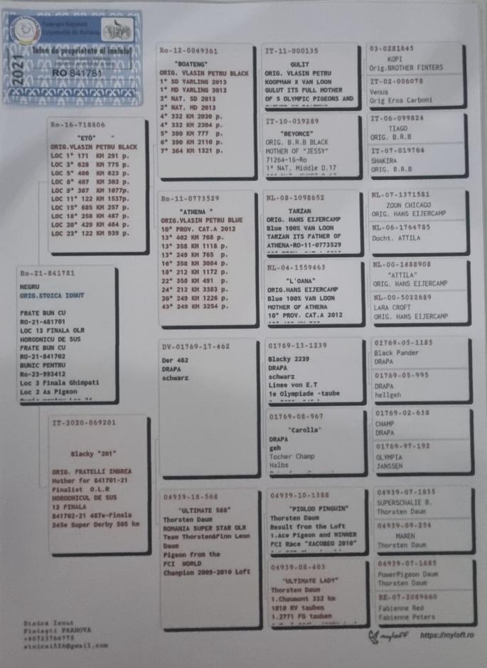 FRATE BUN CU RO-21-481701 LOC 13 FINALA OLR HORODNICU DE SUS FRATE BUN CU RO-21-841702 BUNIC PENTRU Ro-23-993412 Loc 3 Finala Ghimpati Loc 2 As Pigeon Bunic pentru Loc 24 Semifinala Suprem oferta curenta: Hassy Loft |
