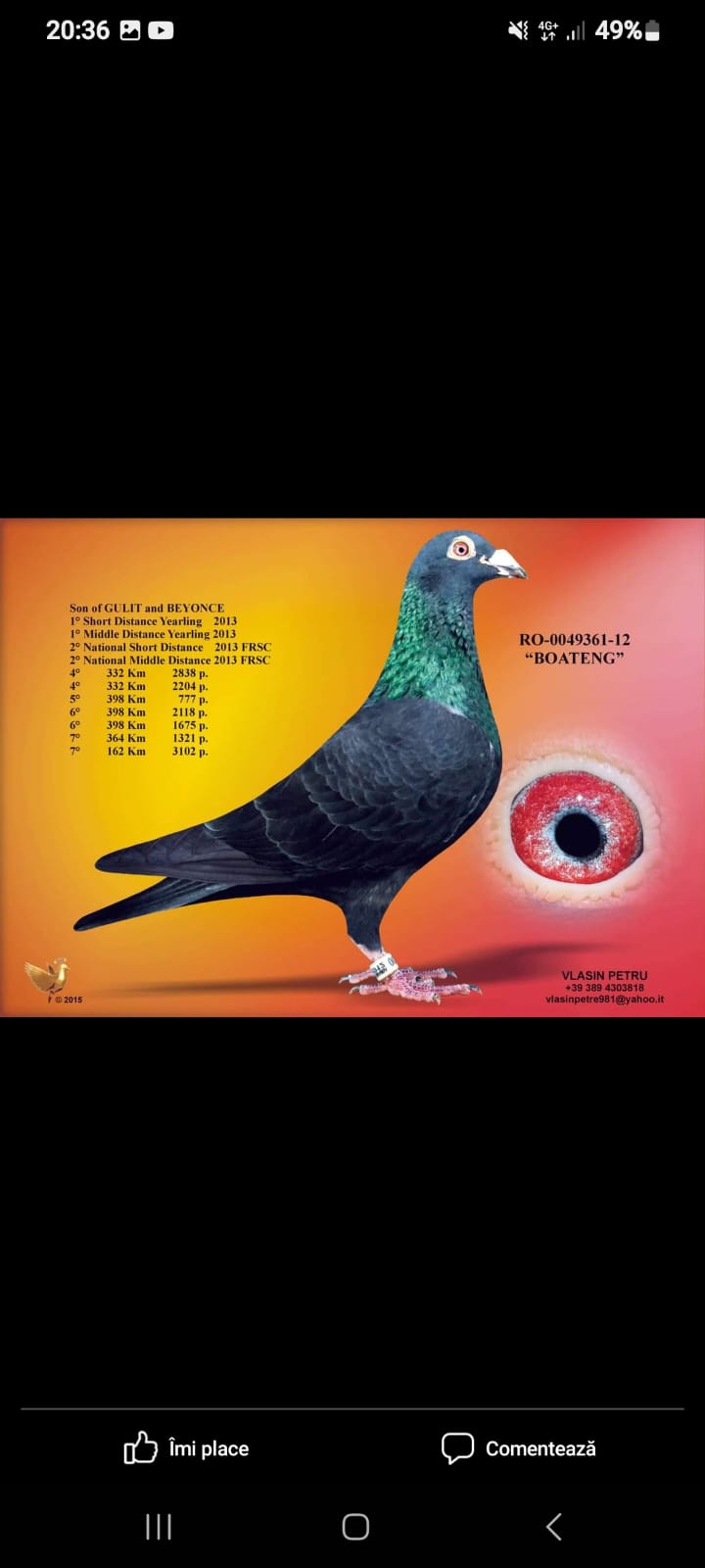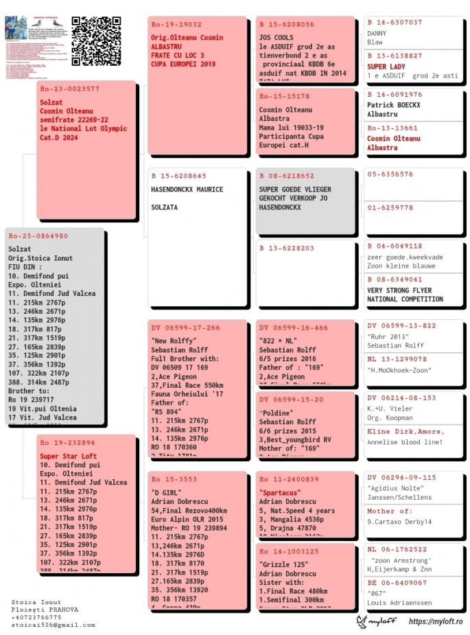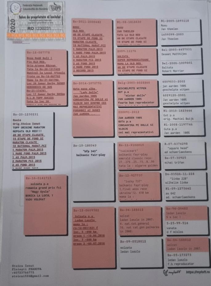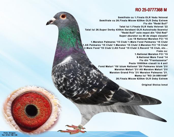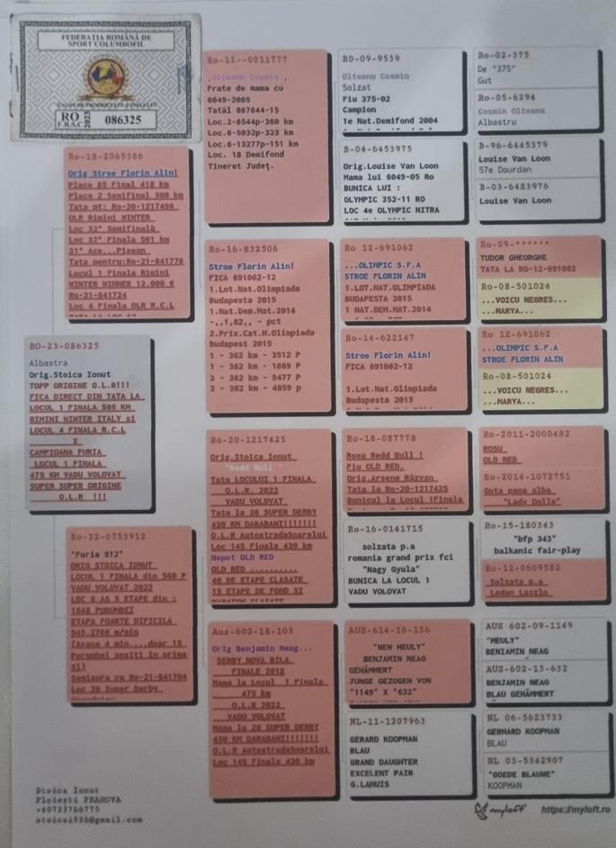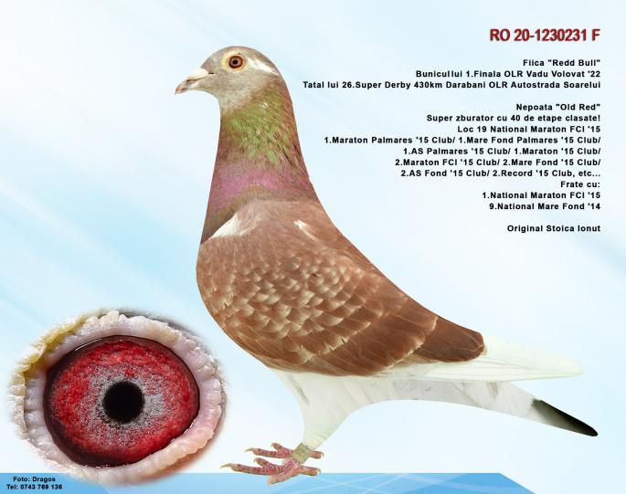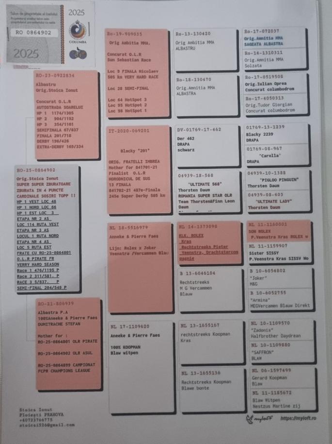 SORA CU : FURIA RO-22-0753912 LOCUL 1 FINALA O.L.R VADU VOLOVAT SORA CU : RO-23-0922802 LLOC 26 SUPER DERBY O.L.R AUTOSTRADA SOARELUI Nepoata Redd Bull ! Fiu OLD RED. Orig.Arsene Răzvan Tata la Ro-20-1217425 Bunicul la Locul 1Finala Frate cu Ro-18-087792 Mama la Ro-21-841704 Loc 26 Super Derby 505KM HORODNICU DE SUS Ro-21-174761 Loc 17 Super Derby 505km O.L.R TOPP SUCCES Tata la loc 26 FINALA 620 KM MYCOW PL. Bunicul la Ro-22-0753912 LOCUL 1 FINALA OLR VADU VOLOVAT oferta curenta: - |