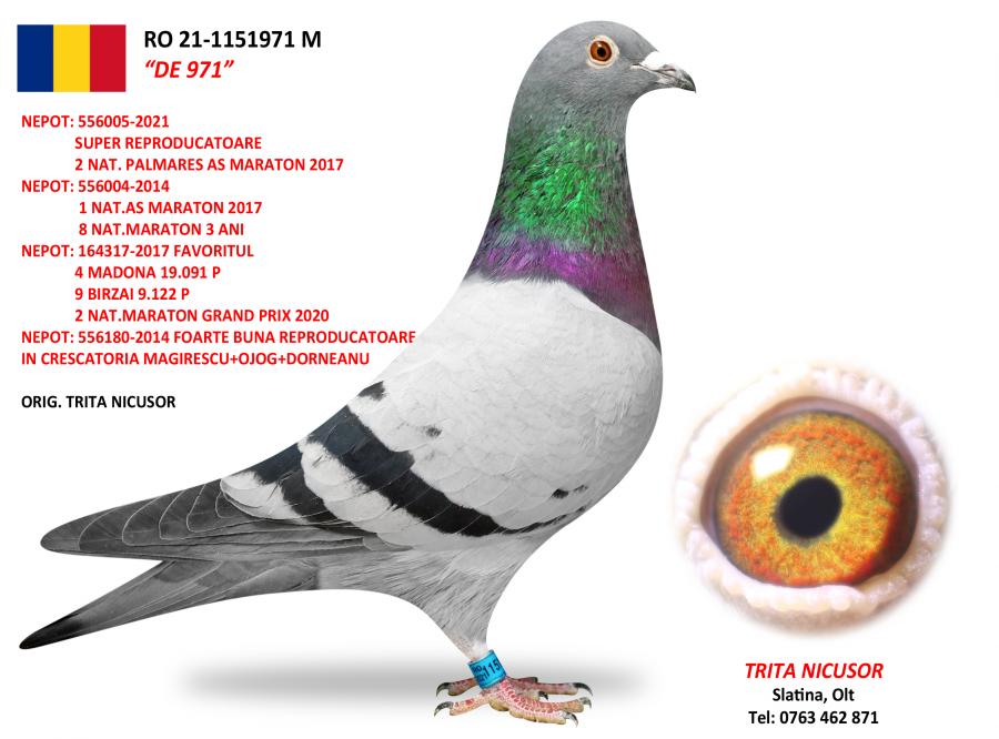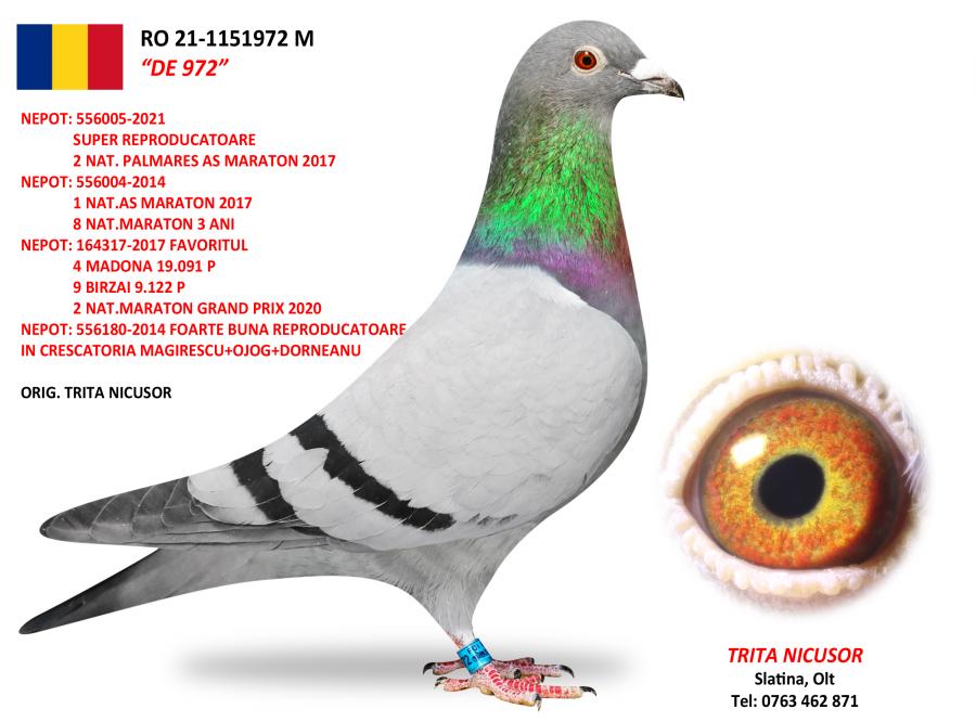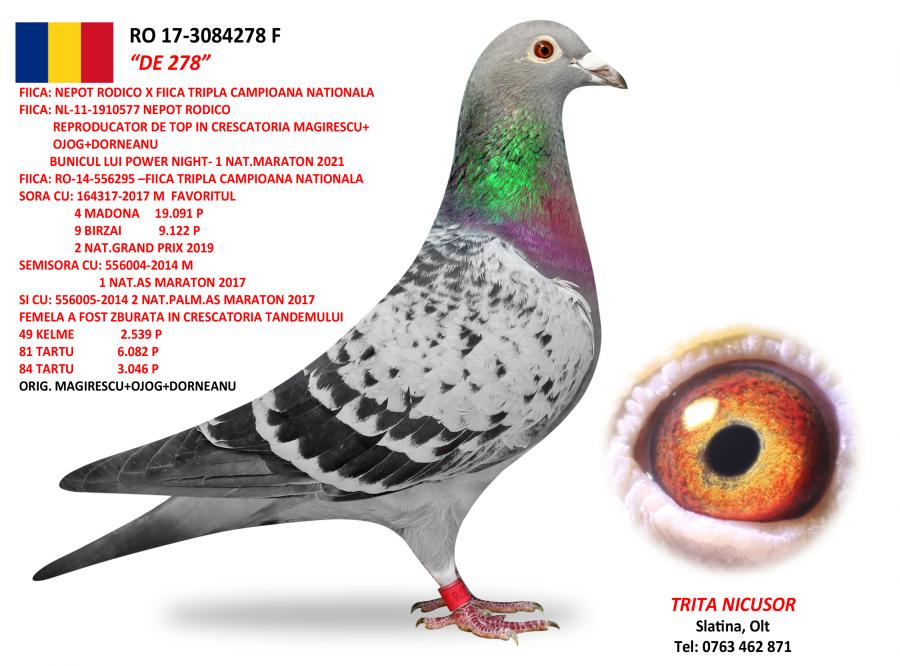 100% MAGIRESCU + OJOG + DORNEANU CONSANGVIN DE 004 1 NAT. AS MARATON 2017 8 NAT. MARATON 3 ANI NEPOT DE 005 SUPER REPRODUCATOARE 2 NAT. PALMARES AS MARATON 2017 NEPOT TRIPLA CAMPIOANA SUPER REPRODUCATOARE 1 NAT. MARATON TINERET 1 NAT. MARATON EXTREM 1 MARATON NATIONAL 4.4 PCT 2014 2 GDANSK 2.447 P 7 LEBORK 1.956 P 96 BIRZAI 4.563 P oferta curenta: Teodor93 |