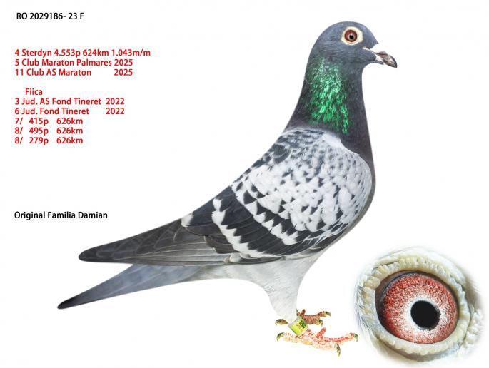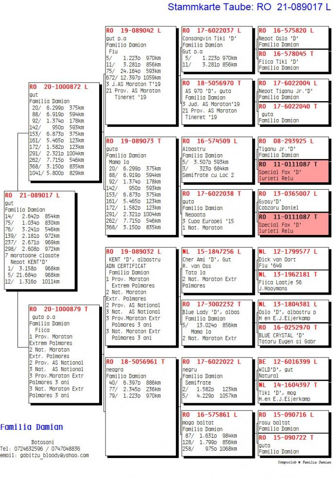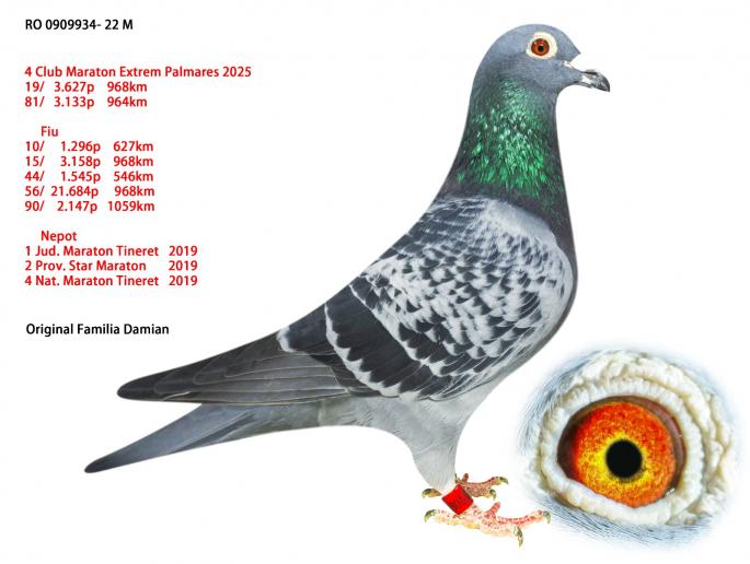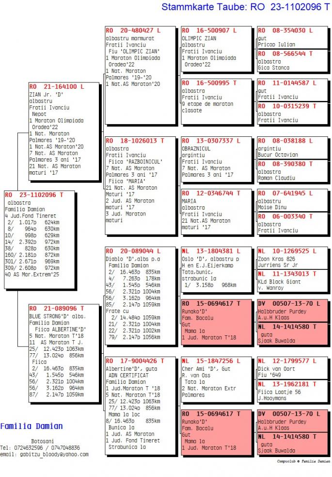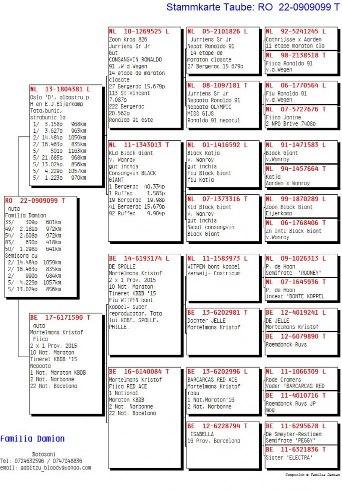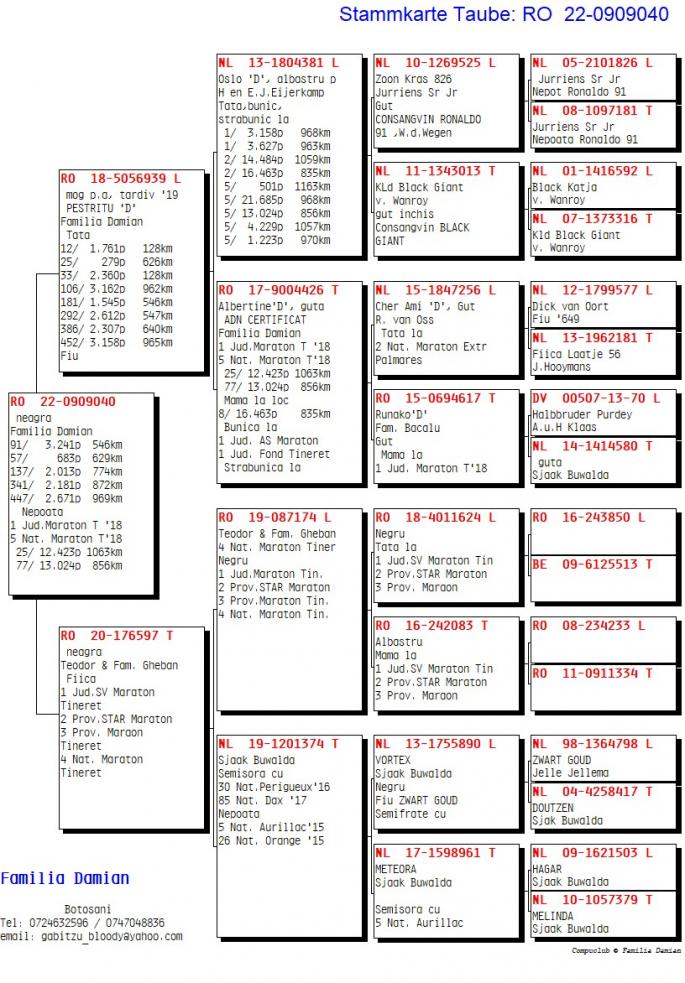 RO 1000028-22 este mama ala: 42 Nat. Roela 2907 p. 1270km 12 / 1435 p. 770km 47 / 1838 p. 623km 58 / 8353 p. 562km 71 / 7027 p. 619km Este sora cu: 17 / 3627 p. 966km 24 / 2392 p. 969km 34 / 3133 p. 962km