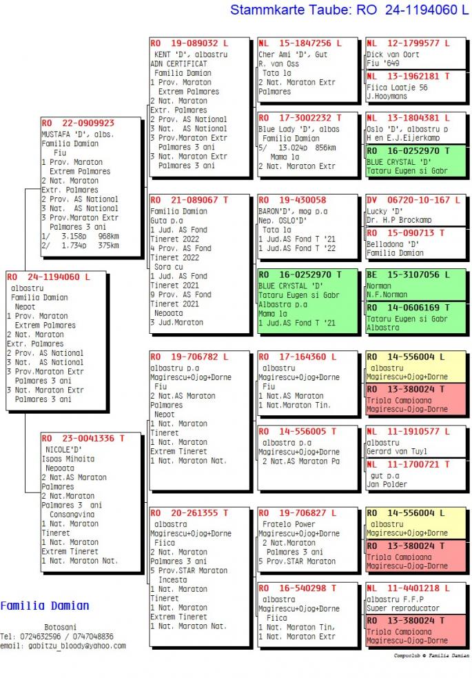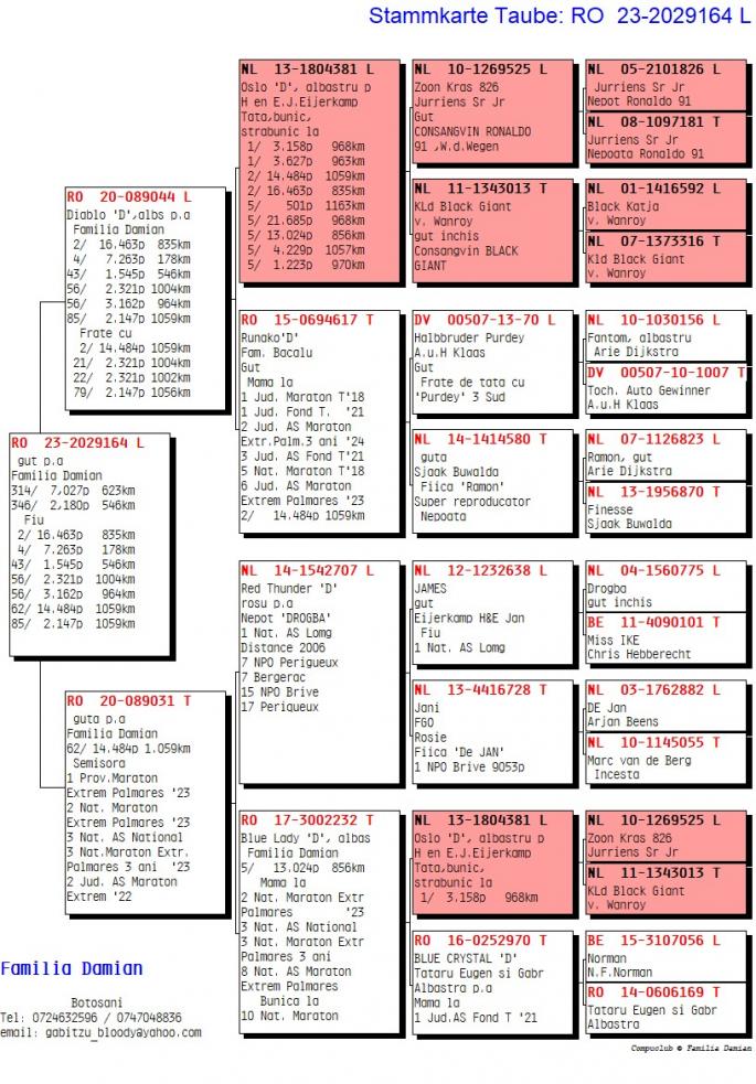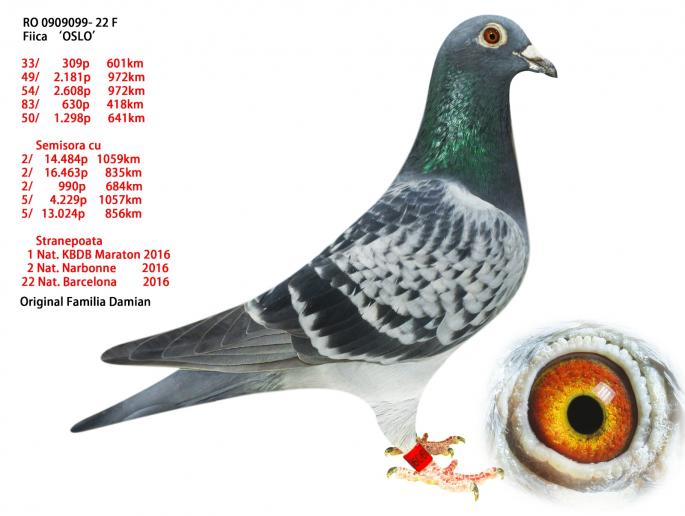 Fiica Oslo D , tata si bunic la: 1/ 3158 p. 968km 1/ 3627 p. 963km 2/ 14484 p. 1059km 2/ 16463 p. 835km 5/ 501 p. 1163km 5/ 21685 p. 968km 5/ 13024 p. 856km 5/ 4229 p. 1057km 5/ 1223 p. 970km