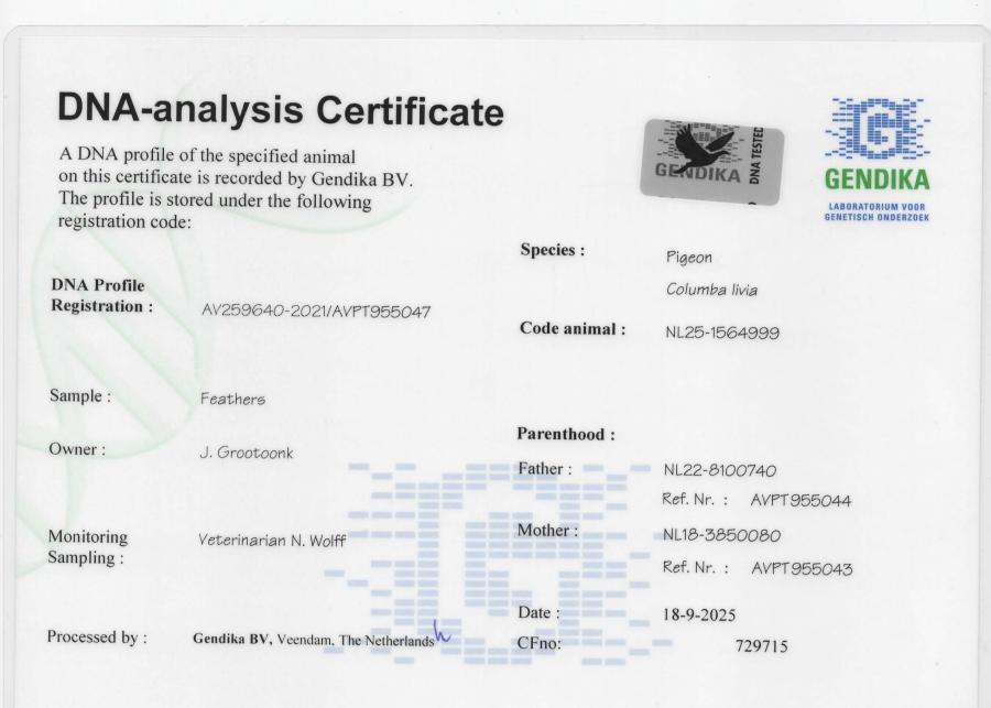 NL: LET OP: De veiling loopt af 20.00uur NL tijd. De duiven zitten bij de liefhebber. De koper kan ik samenspraak met de liefhebber de duif/duiven zelf ophalen of op laten halen door een koerier.